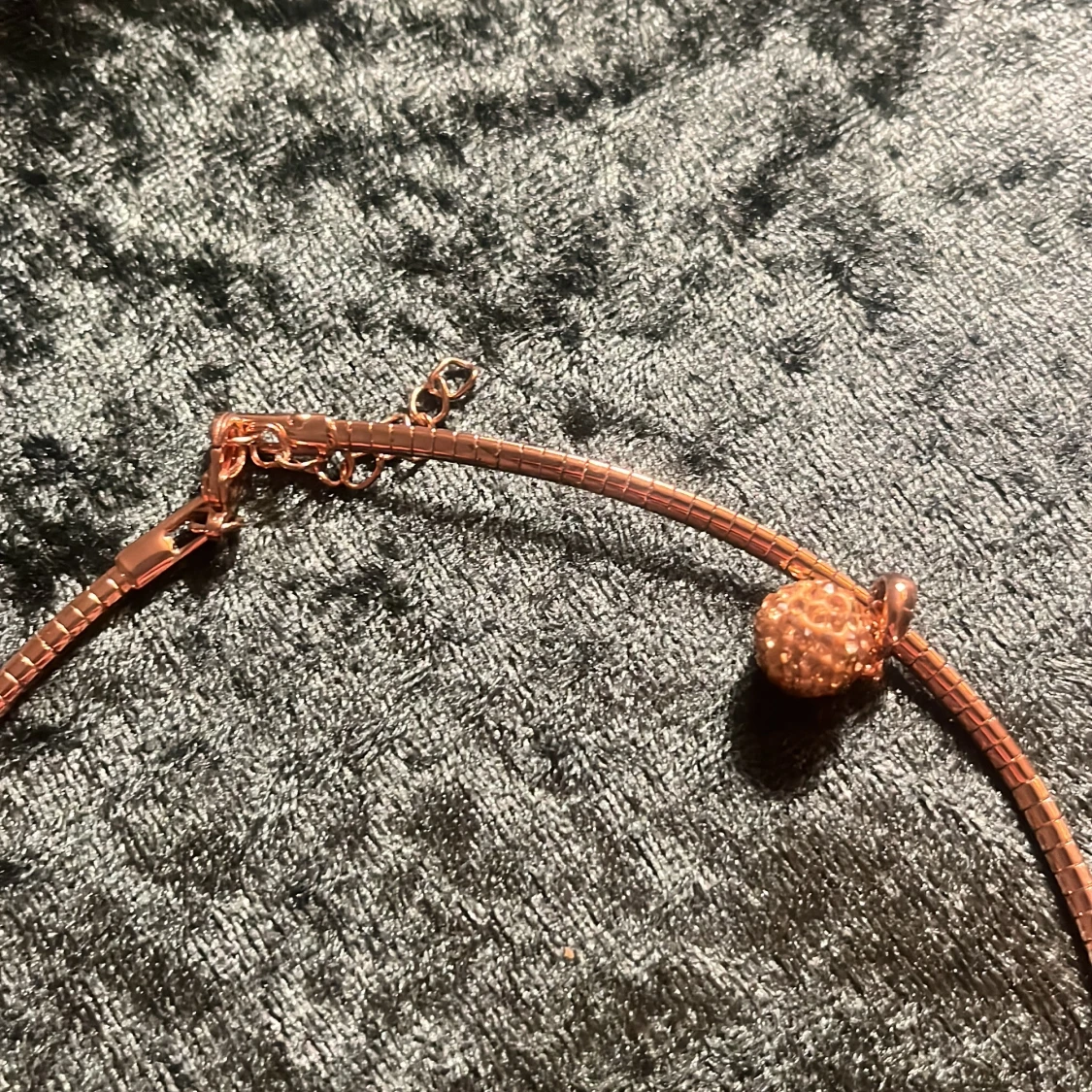 Snyggt halsband i roséguld med en glittrig detalj. Perfekt för att ge en touch av elegans till din outfit. Justerbar kedja för perfekt passform.