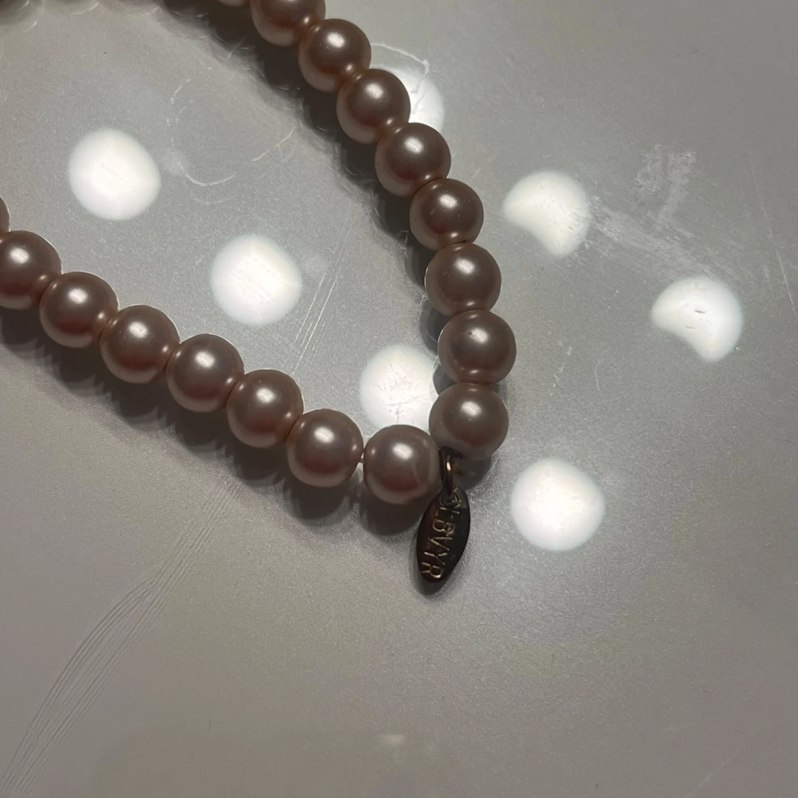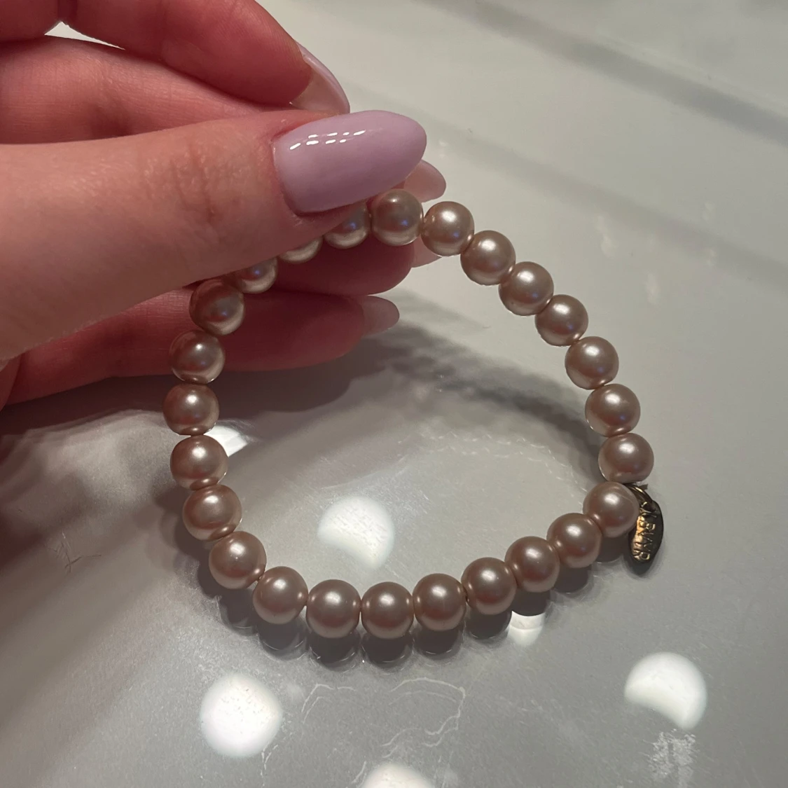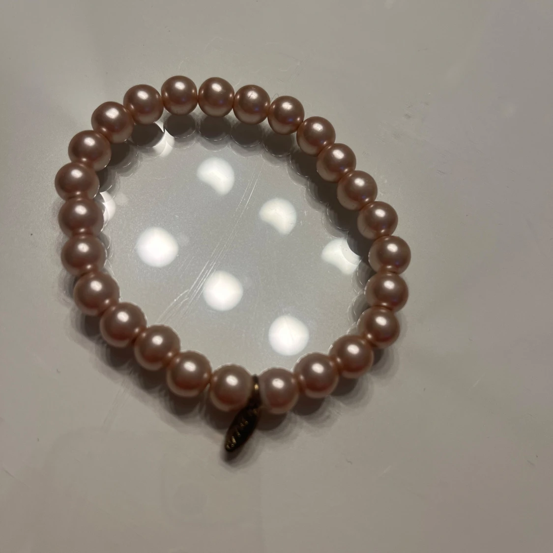 Elegant pärlarmband med ljusrosa pärlor och en liten berlock. Ett väldigt unikt armband, använt någon gång.