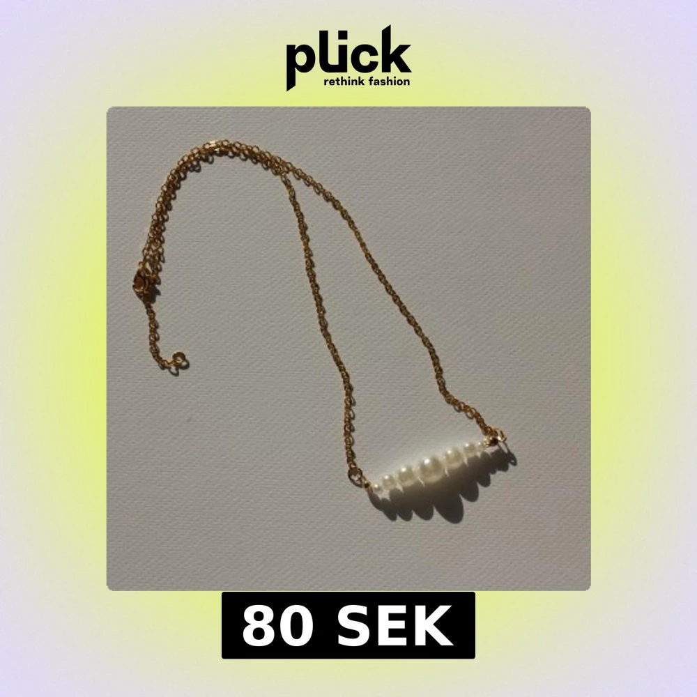 Snyggt halsband med tunn guldfärgad kedja och vita pärlor i olika storlekar framtill. Perfekt accessoar för att lyfta din outfit med en elegant touch.
