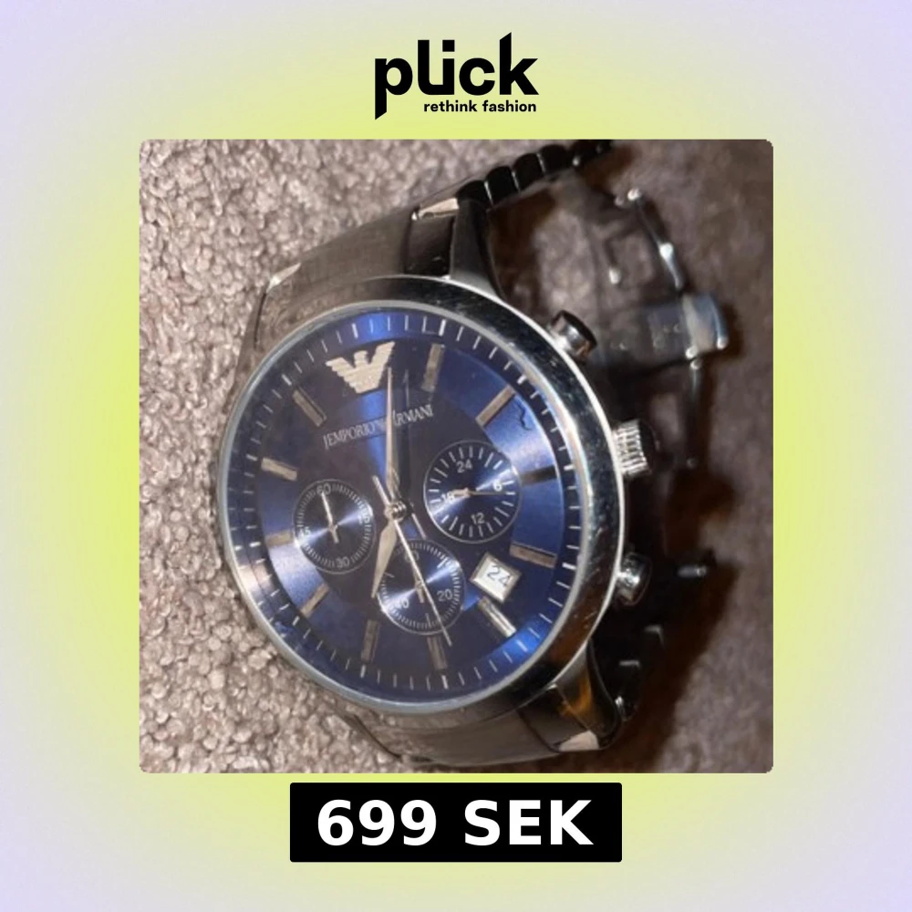 En skön herrklocka från Emporio Armani med en blå urtavla och silverfärgade detaljer. Klockan är använd fåtal gånger, alltså nästan helt ny. Ny pris ligger oftast runt 1599-2000kr och mitt pris 699kr som ej är diskuterbart, speciellt vid en snabb affär. Kom dm vid intresse eller minsta fundering!
