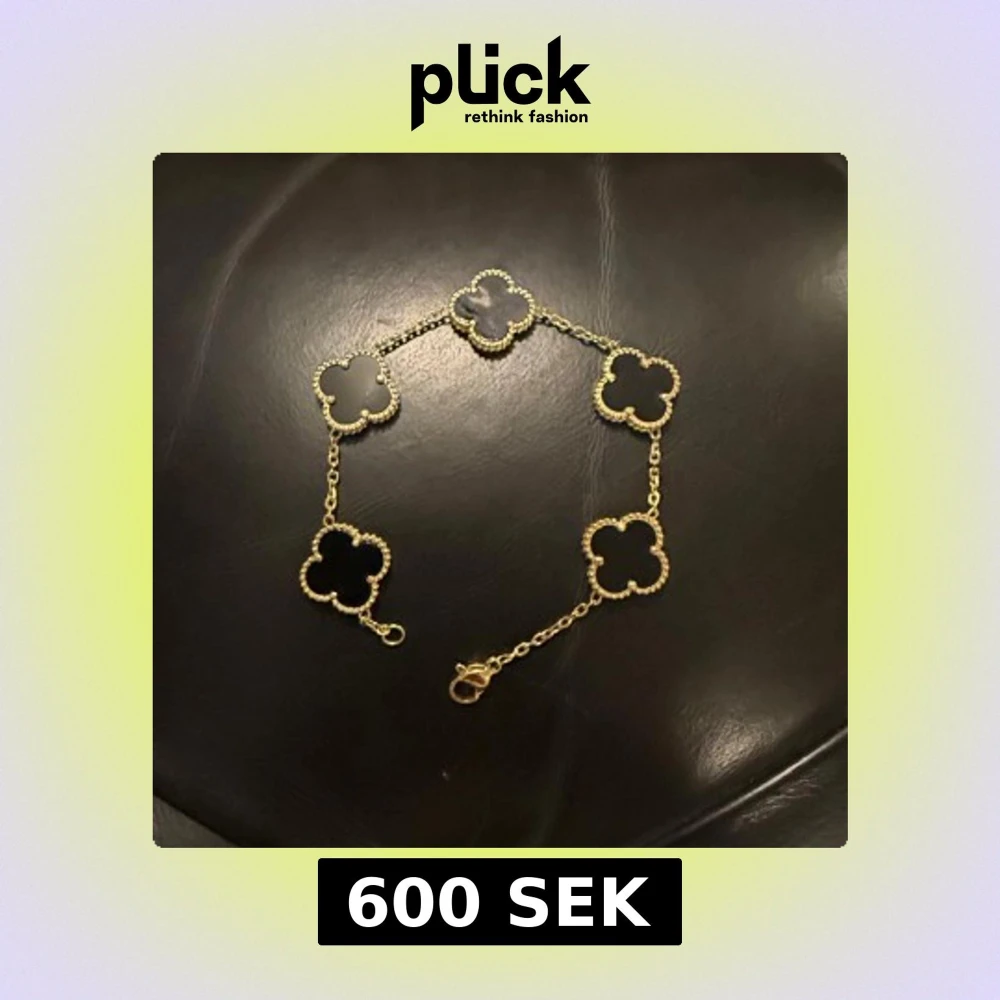Säljer min van cleef and arpels liknande armband som är guldplaterade samt är varje klövers färg baserade på en svart sten! Köptes för 1000kr säljes för 600kr eftersom den har använts mycket men är i ny skick och kan därefter sänka priset mer!