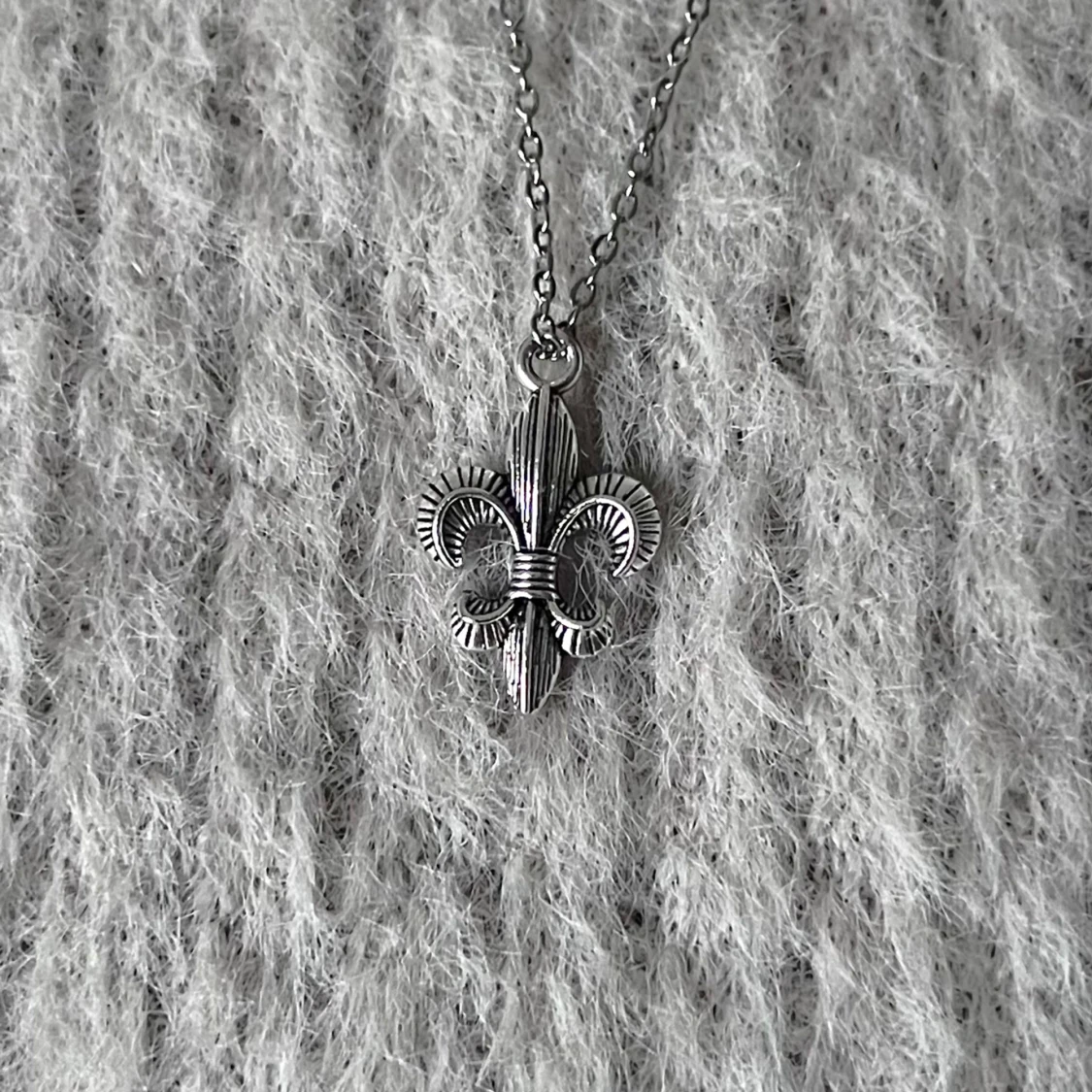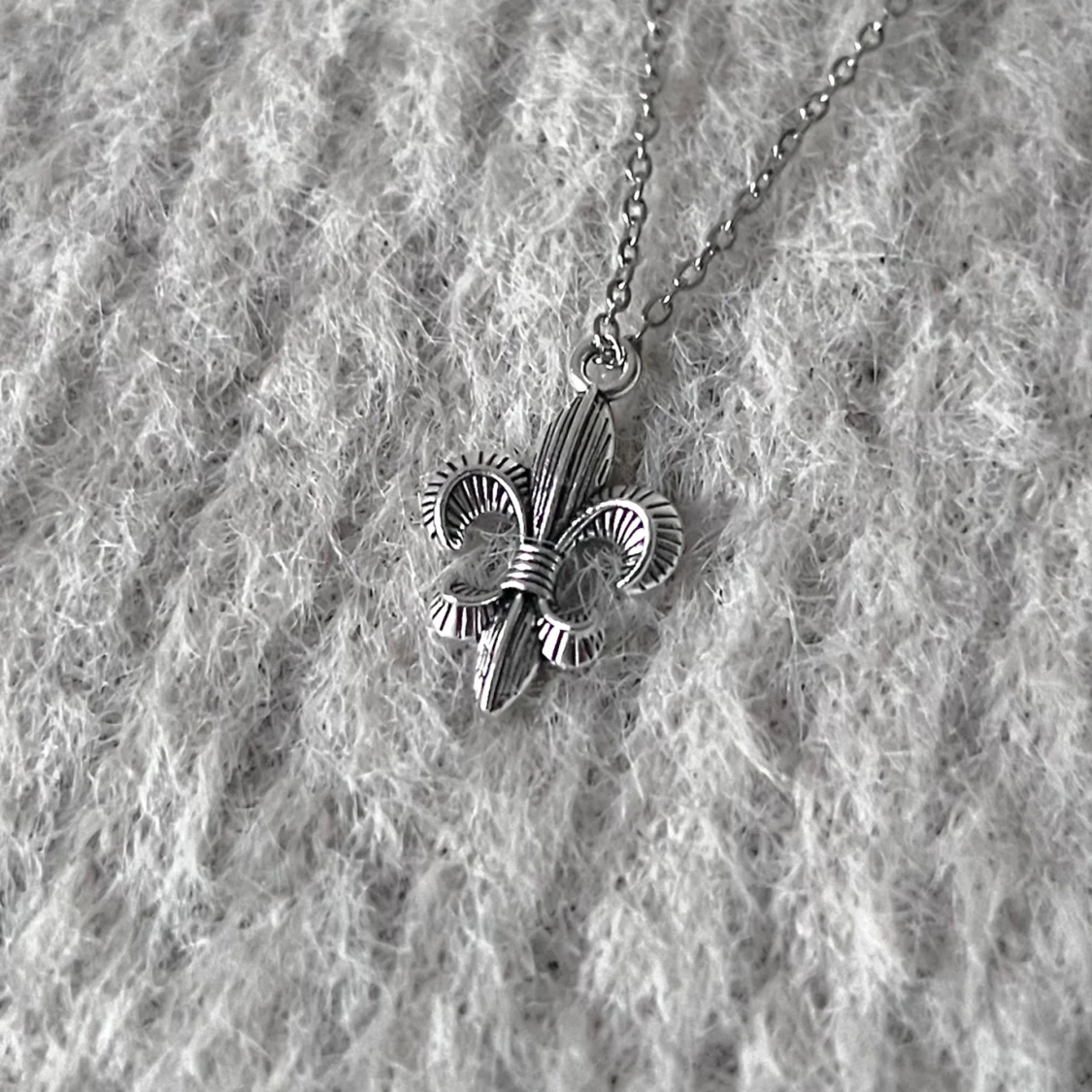 Stainless steel fleur-de-lis necklace with a 2 x 1.3 cm minimalist pendant on a 50 cm chain. Elegant, versatile, and unisex.