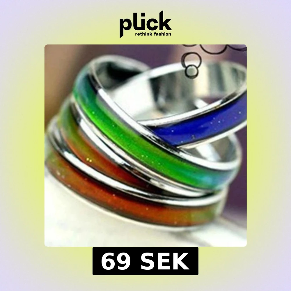 Säljer ett set med färgglada humör-ringar som skiftar i nyanser av blått, grönt och orange beroende på temperatur. Ringarna har en slät, silverfärgad kant och är perfekta för att ge en unik touch till din stil. 69kr/st . Helt ny , sammafrakt , stlk kvar 16-21