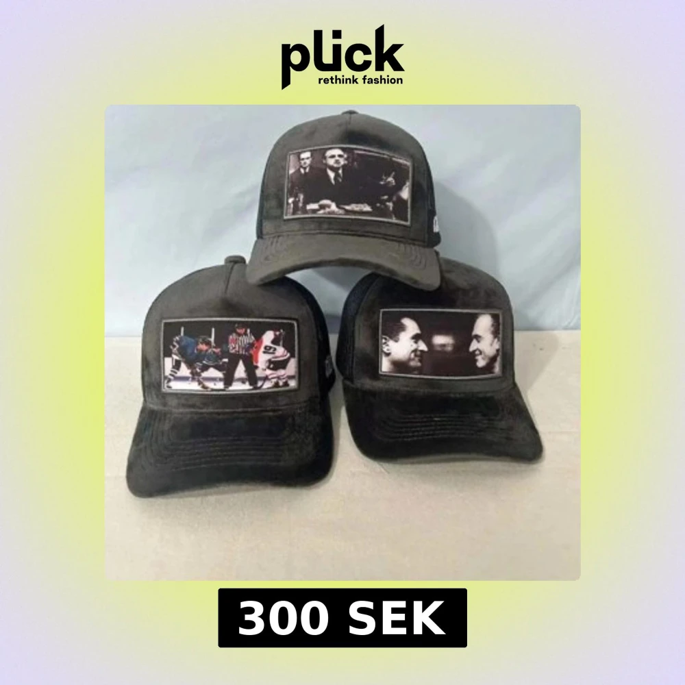 Säljer en samling av kepsar i olika färger med unika tryck på framsidan. Kepsarna finns i svart, röd, blå och orange med motiv som bilar, sport och porträtt. Perfekt för att ge din outfit en personlig touch. DET FINS MÅNGA KEPSAR OM NI VILL KÖPA KONTAKTA MIG!