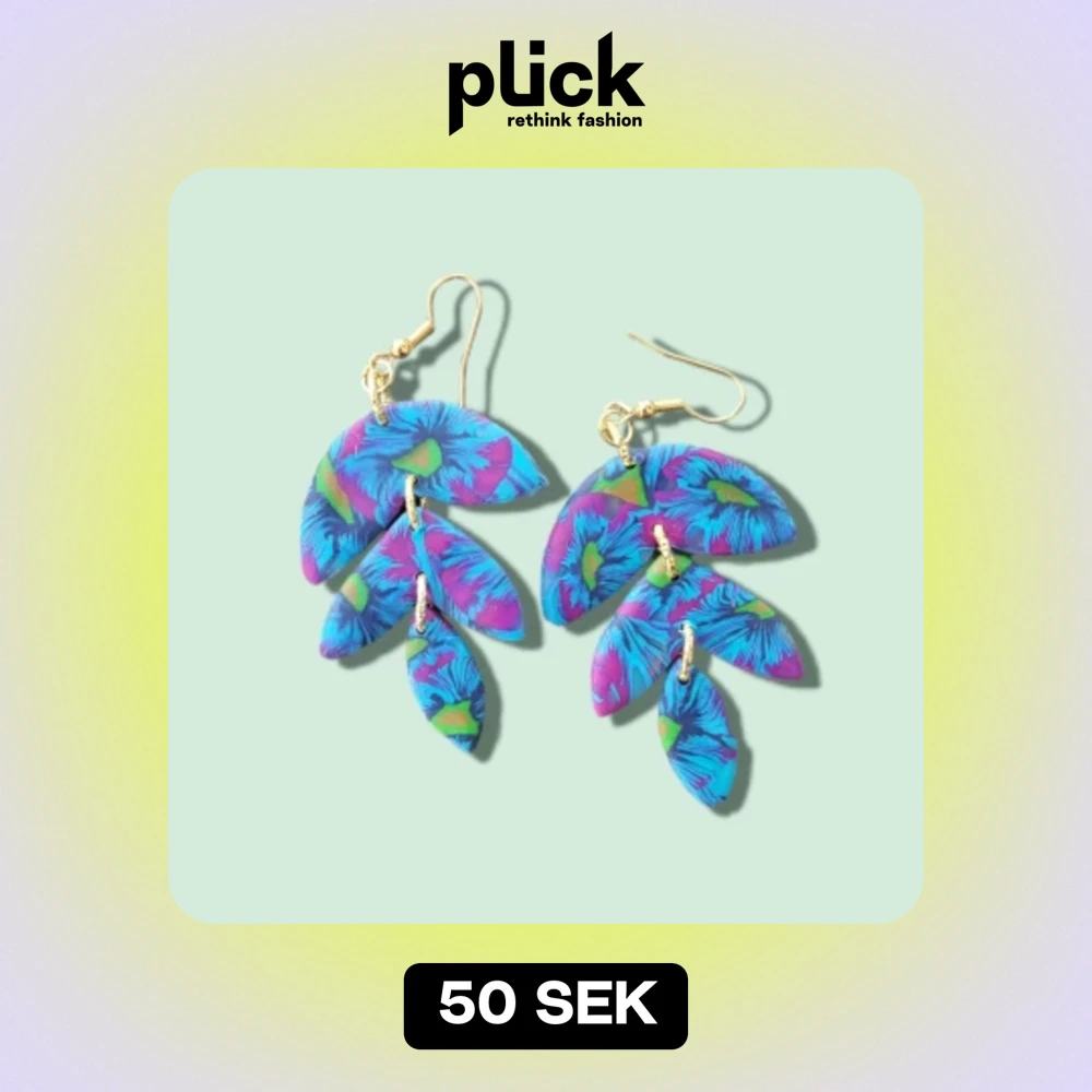Färgglada, egentillverkade örhängen av polymerlera. Designade och tillverkade av mig själv. Putsade och polerade. Naturlig glans pga polering. Inte lackade. Meralldelar är av rostfritt stål.