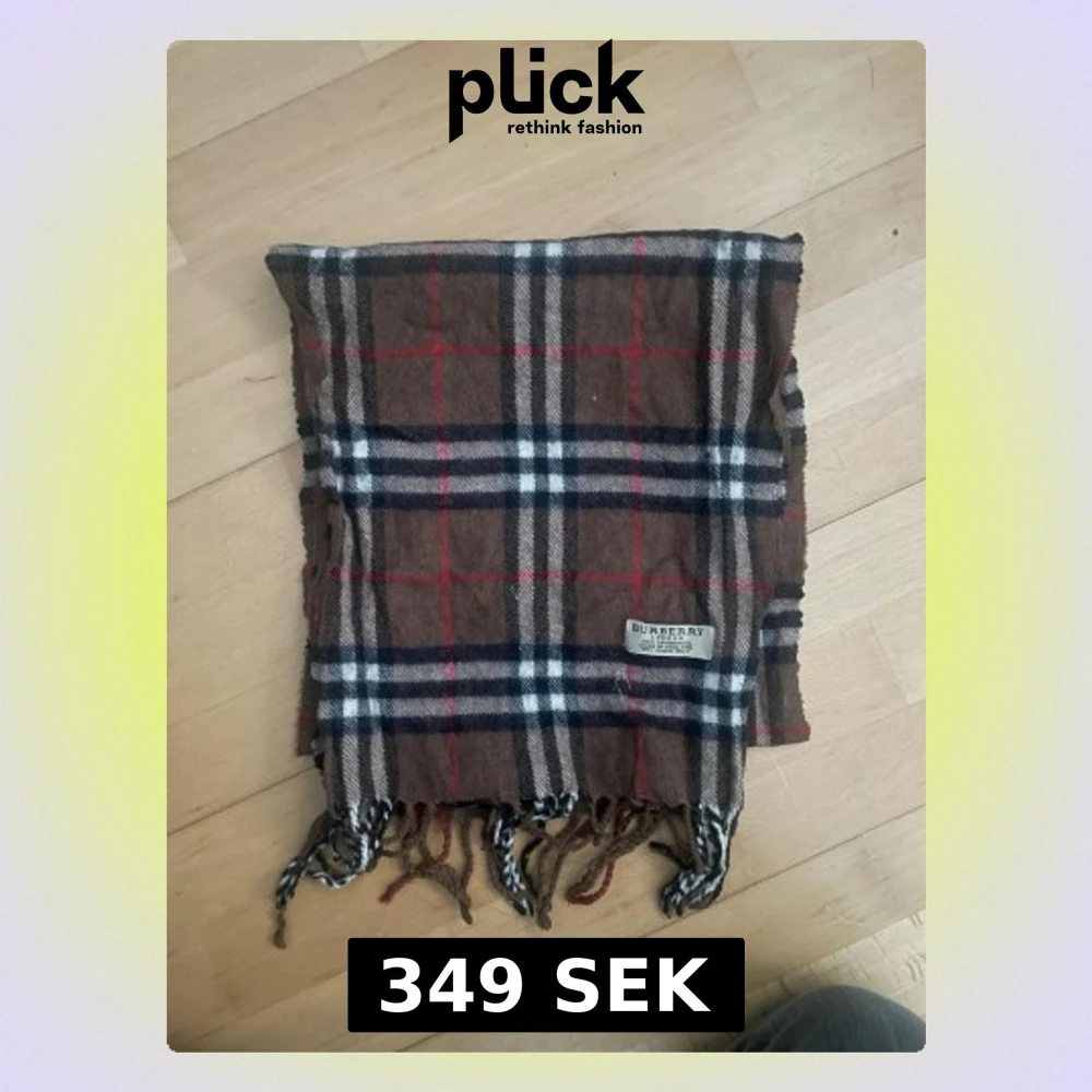 Säljer en brun halsduk från Burberry med klassiskt rutigt mönster i svart, vitt och rött. Halsduken är tillverkad i 100% lammull och har fransar längs nederkanten. Perfekt för dig som gillar tidlös design och vill ha något som sticker ut. Perfekt för vintern. Längd:135cm bredd 35cm