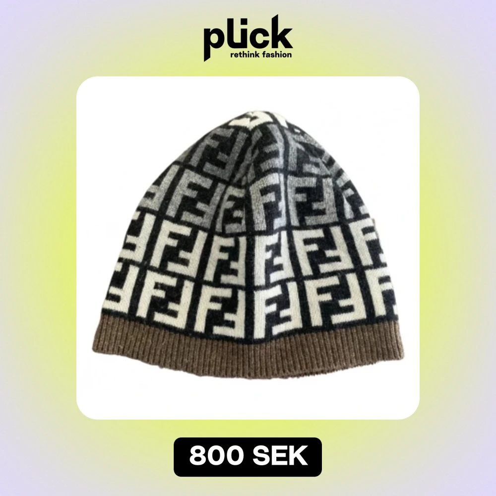 Fendi FF-mönstrad mössa i ull - Snygg mössa från Fendi med ikoniskt FF-mönster i svart och brunt. Tillverkad i mjuk ull och har ribbad kant nedtill för extra komfort. Perfekt accessoar för att lyfta din look med lyxig streetstyle-vibe. Äkta från vestaire! Säljer för den inte är min stil och jag vill mest ha bort den.
