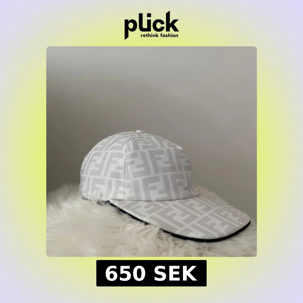 Snygg vit fendi keps med ikoniskt FF-logomönster över hela kepsen. Klassisk böjd skärm och justerbar rem baktill. Tillverkad i ett tåligt tyg med svart insida för extra kontrast. Perfekt för dig som vill sticka ut med en lyxig accessoar.