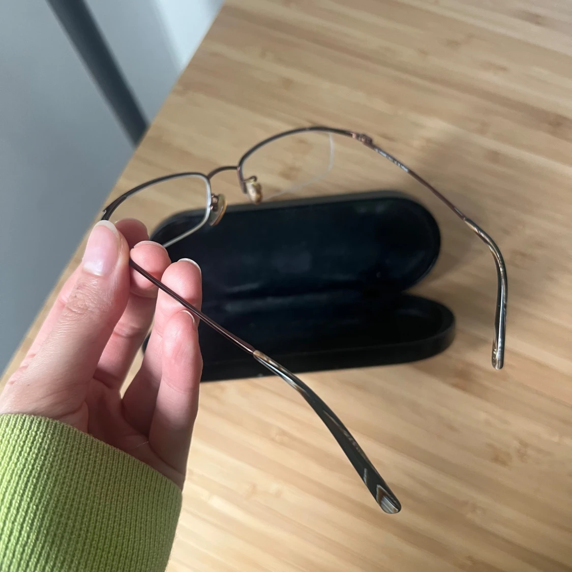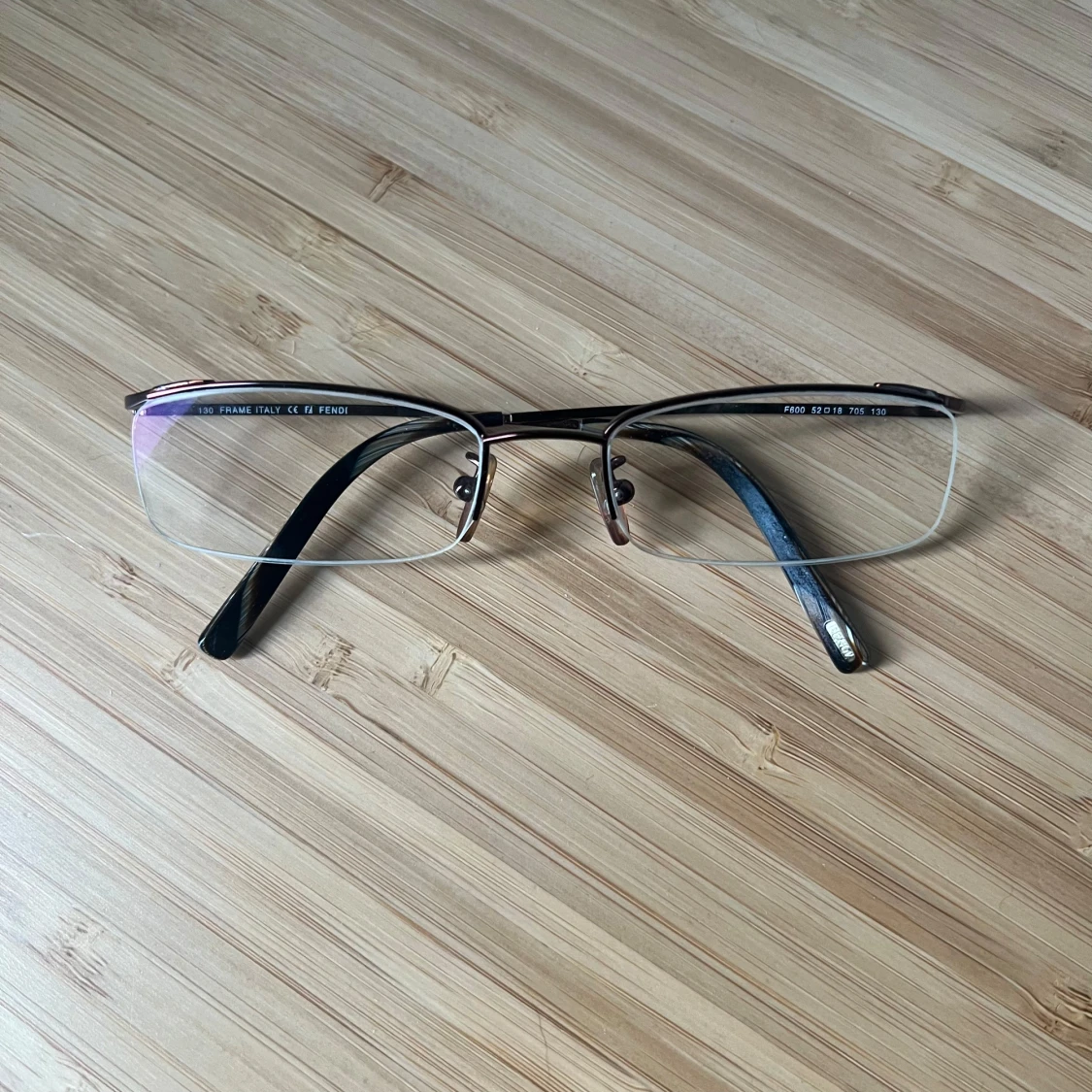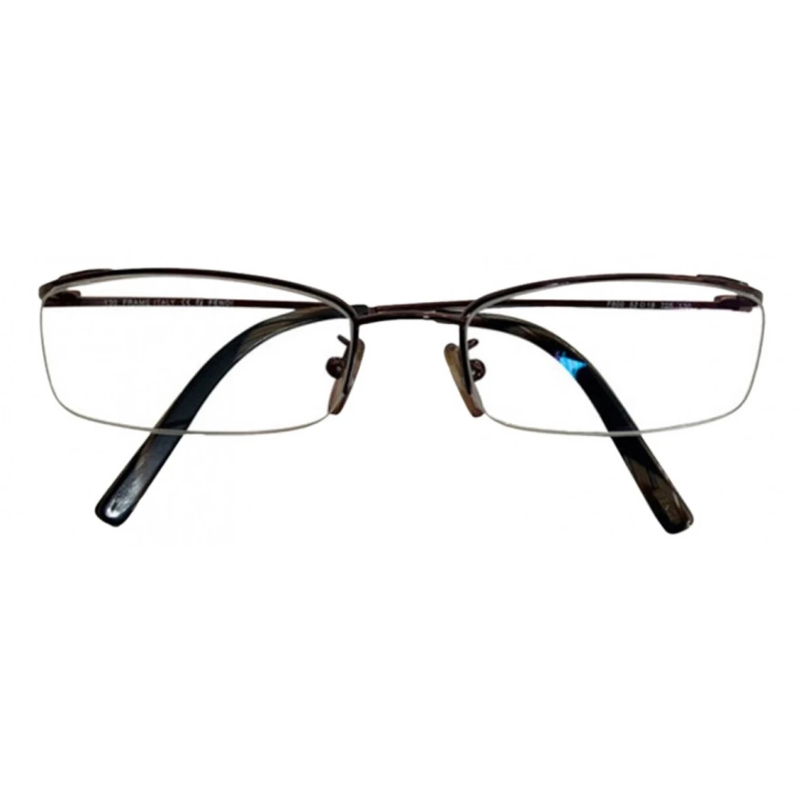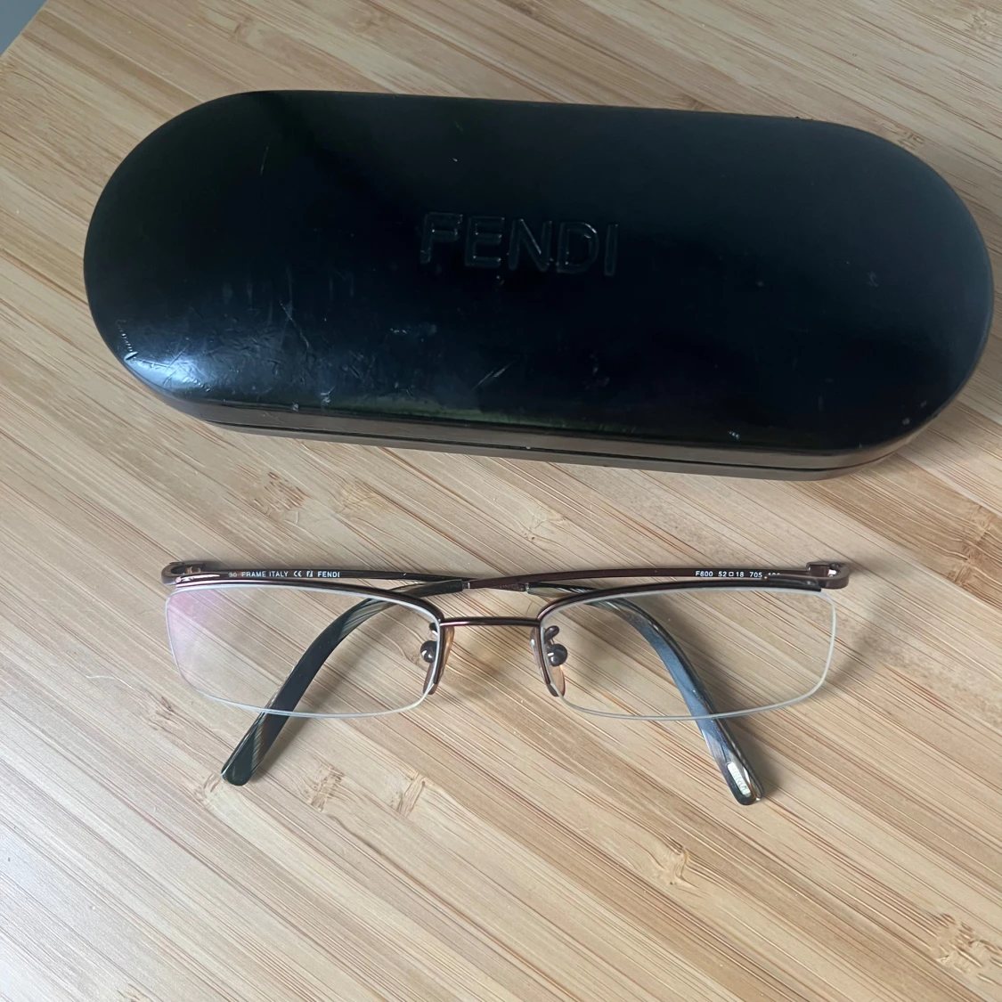 Stilrena vintage solglasögon från Fendi med tunn, rektangulär metallbåge i brun och silver. Halvram-design med näskuddar för extra komfort. Kommer med original svart fodral med Fendi-logga.