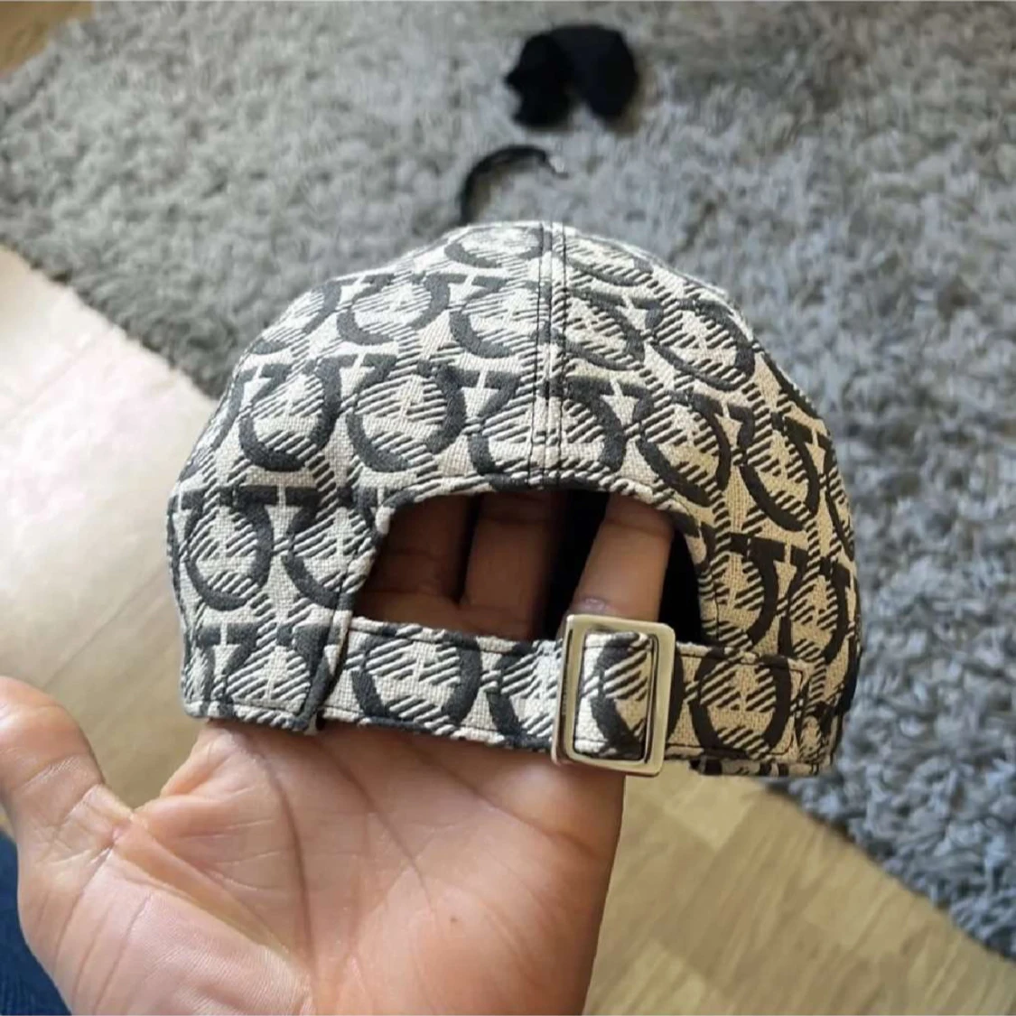 Snygg keps från Ferragamo med ikoniskt svart och beige monogrammönster över hela kepsen. Justerbar rem baktill med metallspänne. Tillverkad i bomull och läderdetaljer, fodrad med svart bomull. Perfekt för dig som gillar lyxiga accessoarer.