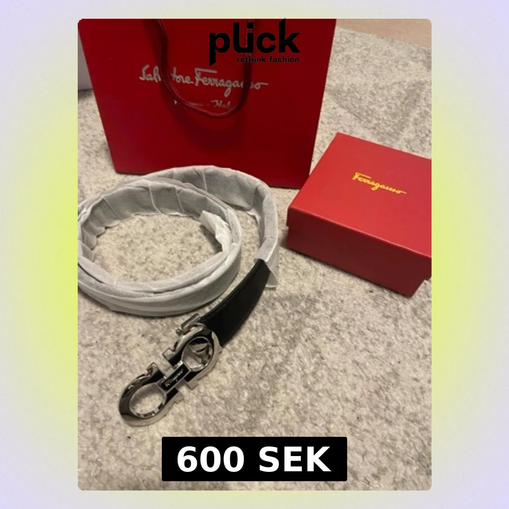 Säljer ett stilrent svart bälte från Salvatore Ferragamo med exklusivt silverfärgat spänne i metall. Bältet är gjort i slätt skinn och har en klassisk design som passar till både jeans och kostym. Kommer med originalförpackning och dustbag.