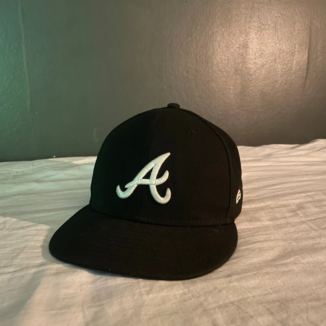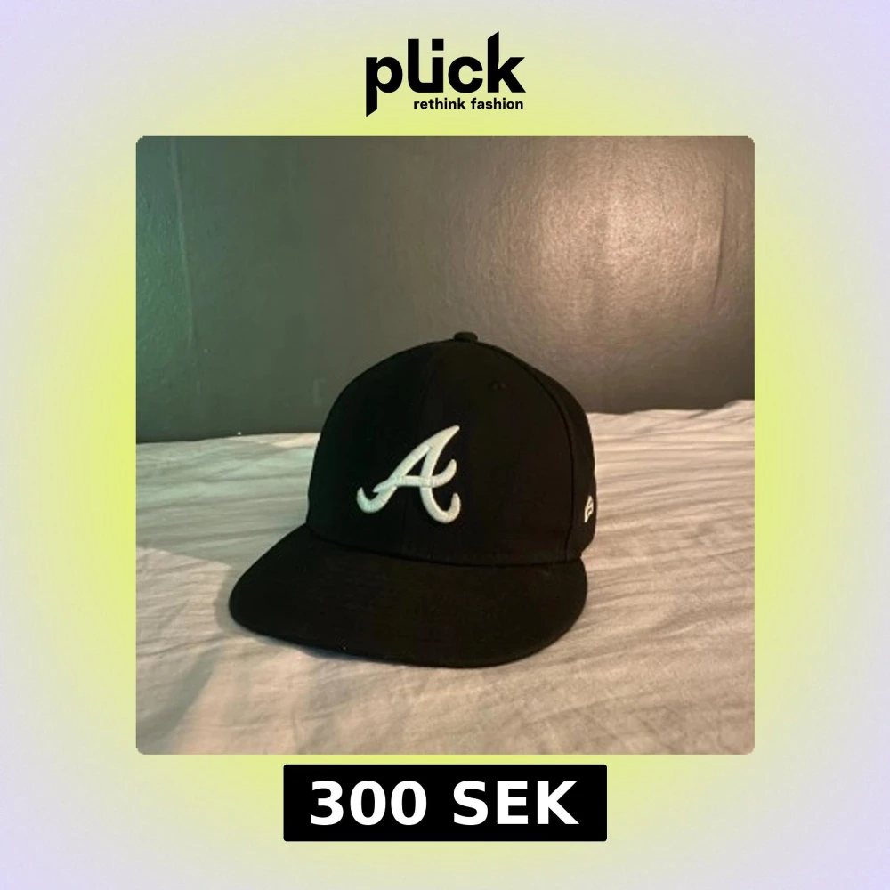 Säljer en svart New Era Fitted 59FIFTY keps med Atlanta Braves A-logga broderad framtill i vitt pga förstor för mig. Fint skick! Storlek 7 3/8 ( 58,7 cm) Bara höra av er om frågor👍