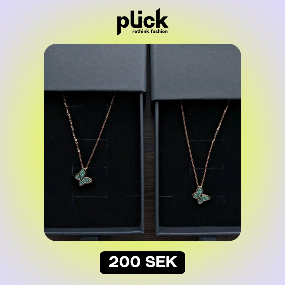 Fjäril halsband med gröna stenar (set) (53bb)