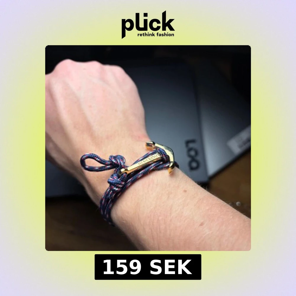 Säljer detta unika armband från Blvckout med marin känsla, gjort av marinblått, rött och vitt flätat rep med en guldfärgad ankare som lås. Snygg detalj med märkets logga ingraverad på ankaret. Perfekt för en som gillar stilrena smycken. Nypris ca 400kr, kom med prisförslag⚓️🌊💍.