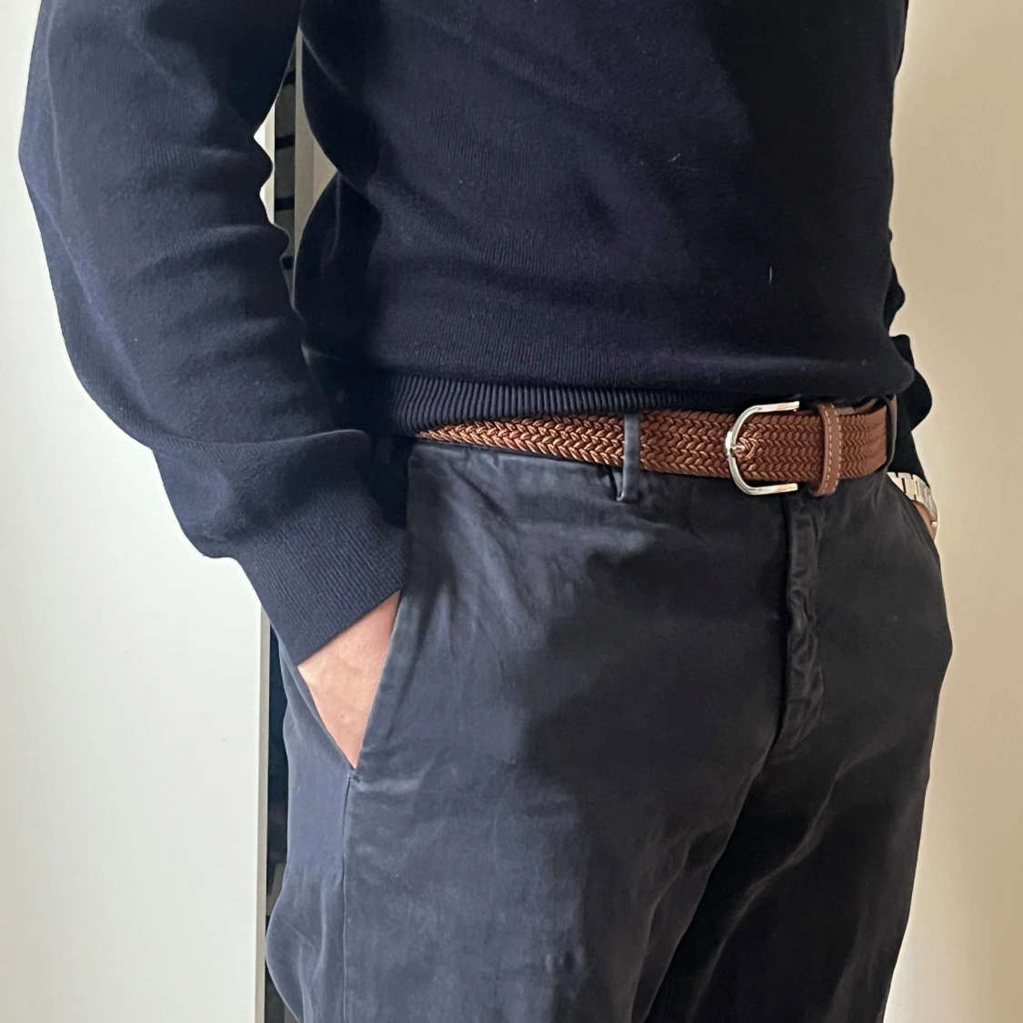 Flätat bälte som passar vardagliga och festliga tillfällen. Bältet är one size och är 120 cm långt. OBS!! Märket på bild tre varierar, detta pga att vi vill personalisera bältet och göra varje bälte unikt.