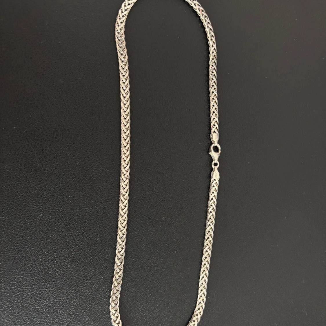 Snyggt halsband i äkta 925 silver med flätad kedja och karbinlås. Kedjan väger 14 gram och har en stilren, klassisk look som passar perfekt till din vardagsstil. Märkt med 925-stämpel för äkthet. Halsbandet är 42 cm lång.