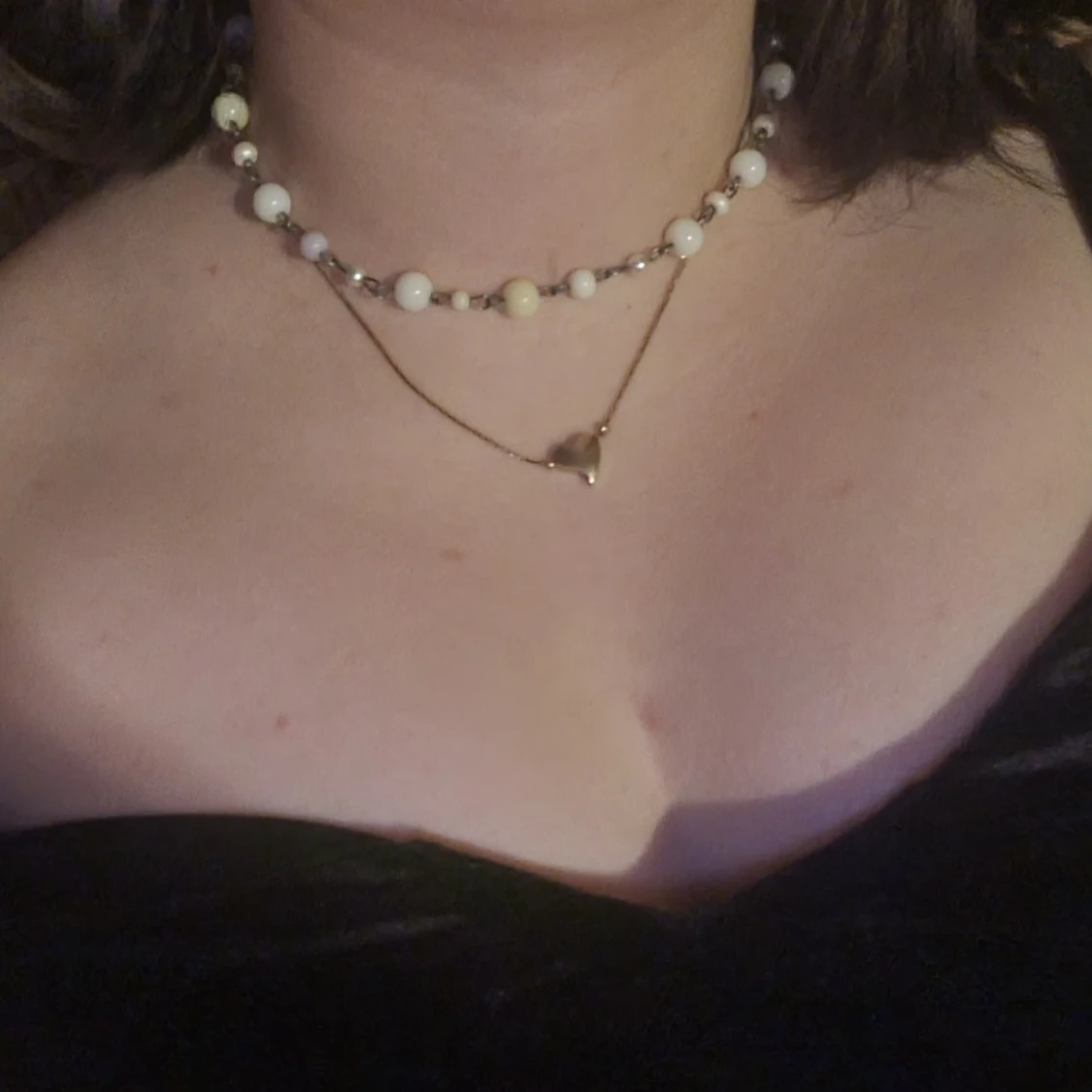 Pärlhalsband i pastellfärger. Pärlorna är i plast.