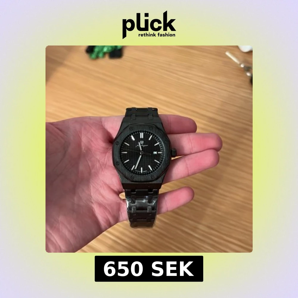 Snygg klocka som ska likna Audemars Piguet Royal Oak, och jag tycker de har lyckats rätt bra med designen. Plasten är fortfarande på och låda samt länkverktyg följer med på köpet!
