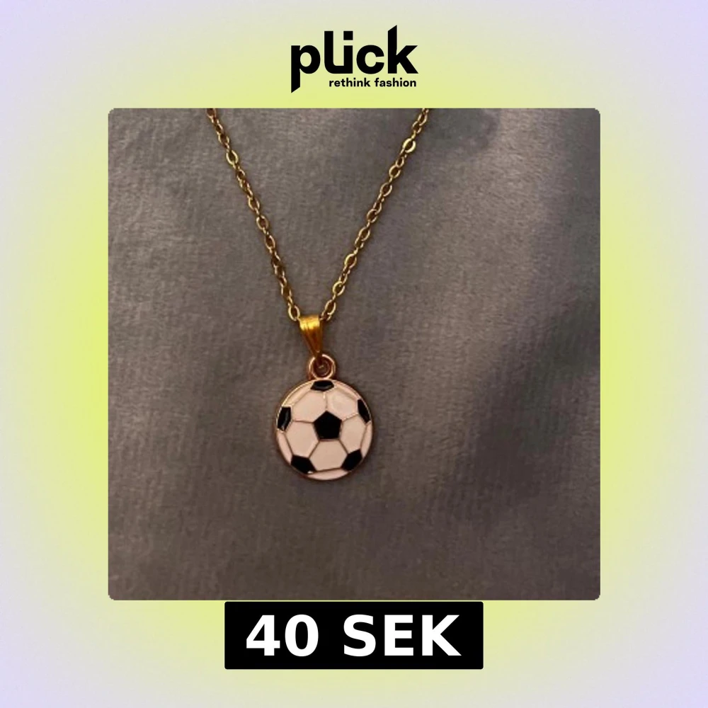 Ett fint halsband med en liten fotboll. Trädd på kedja i guldimitation, justerbar 40-45 cm. Fotbollen är ca 1,2 cm i diameter. Perfekt present för den som älskar fotboll!⚽️