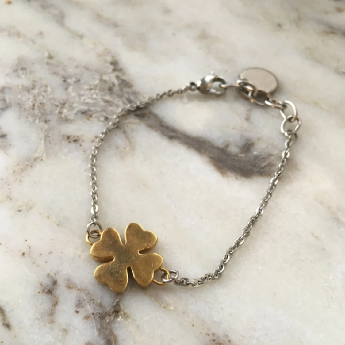 gulligt lyckoarmband från edblad. som man ser på bilden är fyrklövern inte i nyskick, därav det låga priset. hämtas i sthlm eller skickas om du betalar frakt. säljer massor (kmr mycket nytt i dagarna), mängdrabatt finnes!