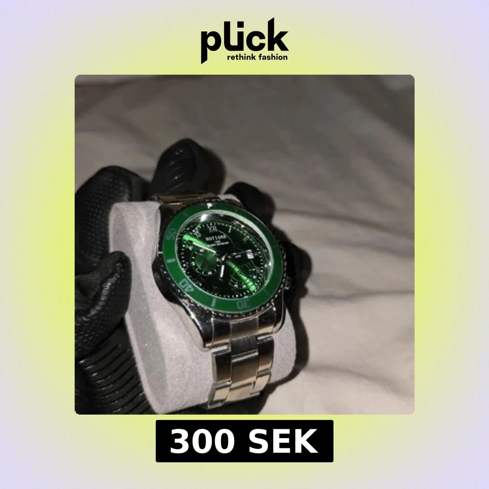 Snygg klocka med grön urtavla och matchande grön bezel. Klockan har ett robust silverfärgat armband i metall. Perfekt för den som vill ha en iögonfallande accessoar. Datumet och tiden går att styra med kornan på klockan. Sido knappar är endast dekoration.
