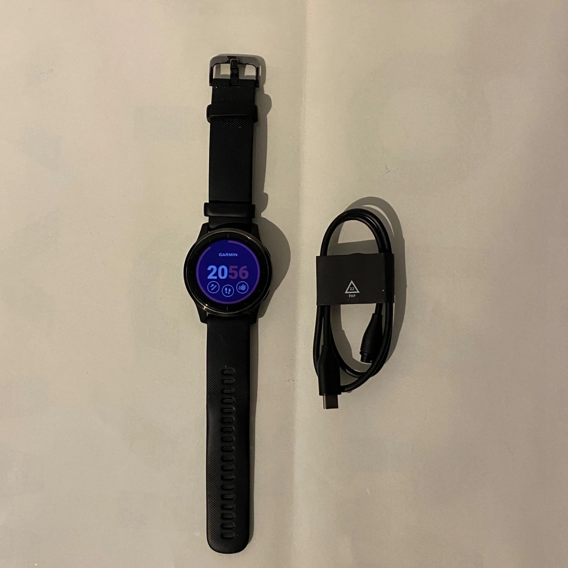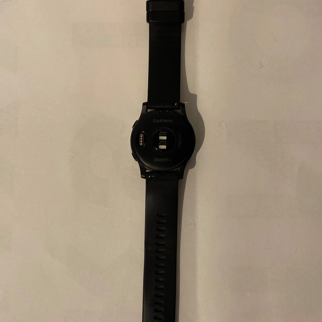 Säljer en Garmin Vivoactive 4 GPS-smartwatch i svart med silikonarmband. Klockan är i gott skick och fungerar felfritt. Original laddkabel medföljer. Funktioner: GPS, pulsmätning och aktivitetsmätning dygnet runt Inbyggda träningsprogram och animerade träningspass på skärmen Musiklagring och Spotify-stöd (kräver Premium) Smartaviseringar från mobilen (samtal, sms, appar) Vattentålig och lång batteritid (upp till 8 dagar i smartwatchläge) Perfekt tränings- och vardagsklocka som passar både för mo