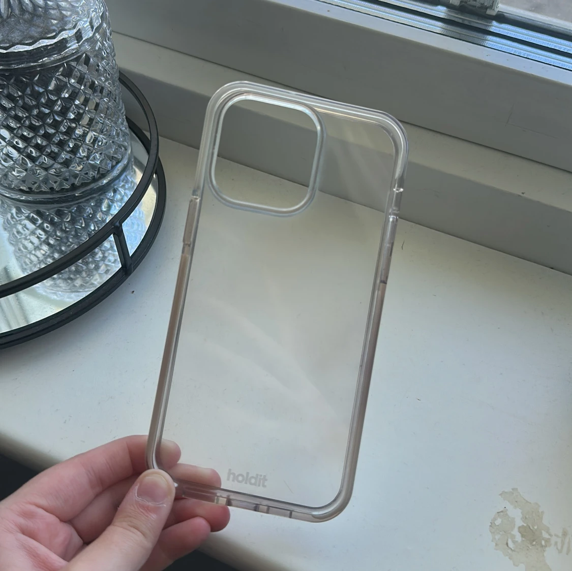Säljer nu ett genomskinligt mobilskal med vita sidor från Holdit till 14 PRO Max. Skalet är använt ett fåtalet gånger och har små tecken på användning. Nypris är 249kr