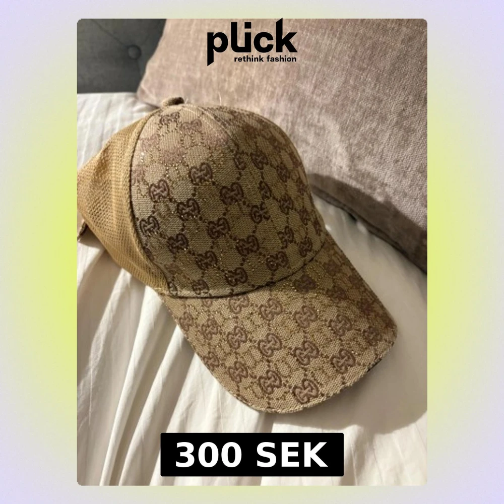Snygg beige keps med klassiskt gg- mönster i brunt och diskreta glittriga detaljer. Framsidan är i textil och baksidan har mesh för extra ventilation. Perfekt för dig som vill ha en lyxig och trendig accessoar.