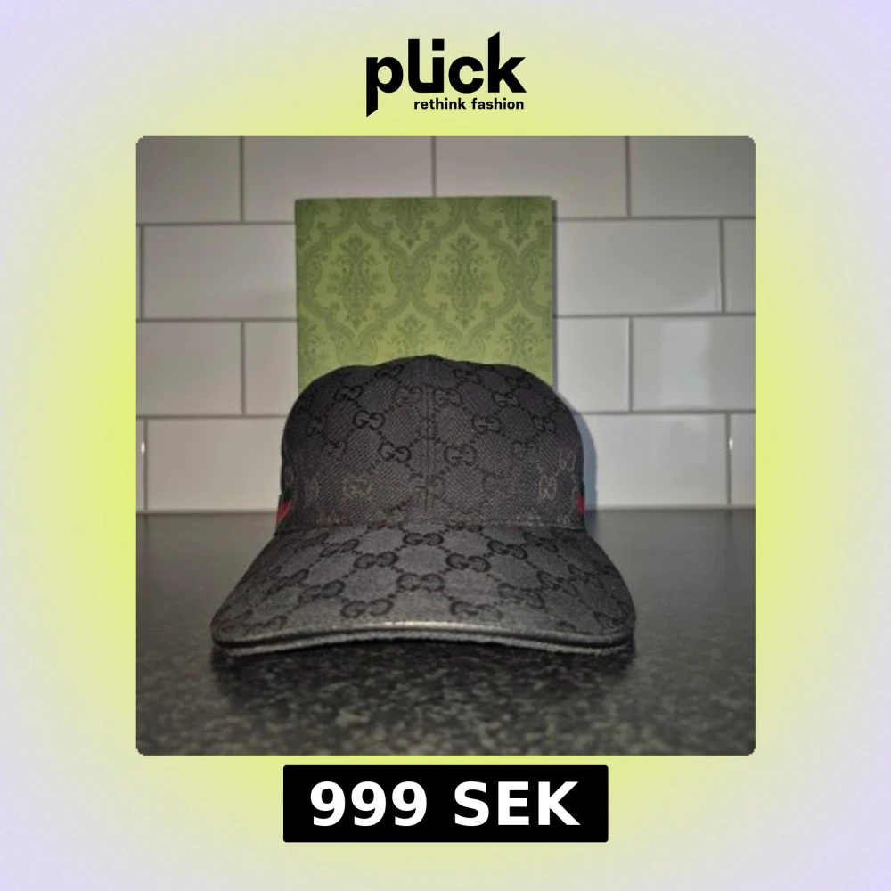 Snygg svart keps från Gucci med det ikoniska monogrammönstret. Kepsen har en röd och grön randdetalj på sidan. Perfekt för att ge din outfit en lyxig touch. Nyskick endast testad. Box och dustbag medföljer