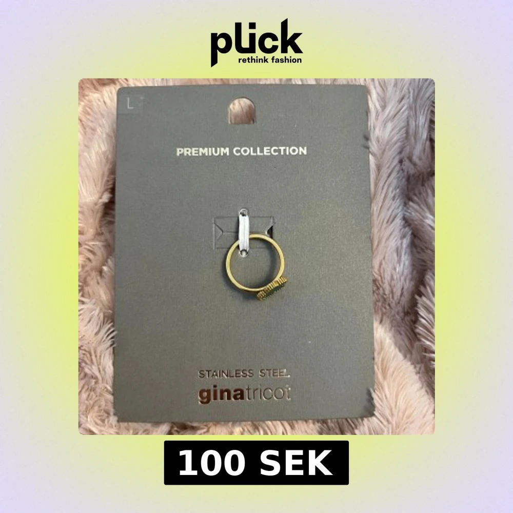 Superfin ring i guldtonad stainless steel från Gina Tricot. Ringen har en grön blomformad detalj med små guldfärgade pärlor runt kanten. Perfekt statement piece för att lyfta din look.