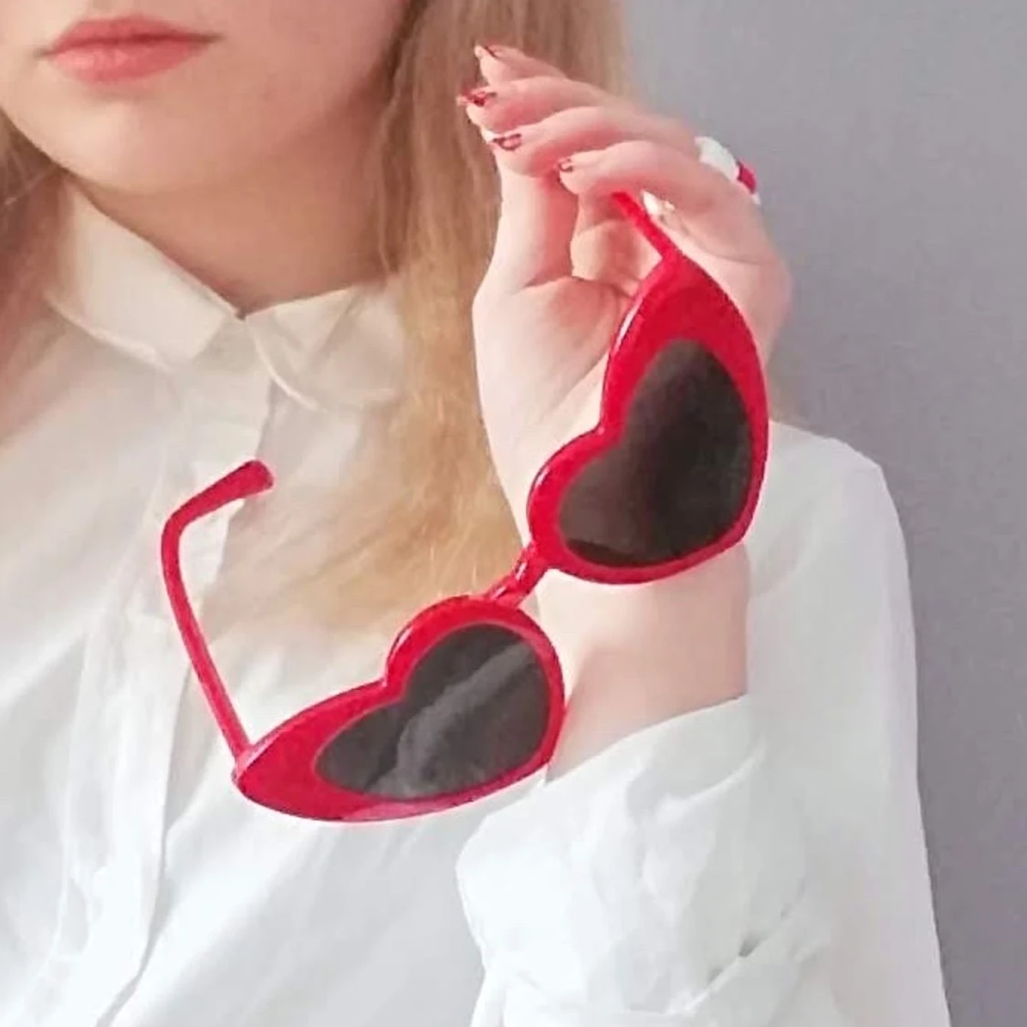Röda, hjärtformade solglasögon ”Lolita” solglasögon. Endast använda ett fåtal gånger! Frakt 51kr eller avhämtning i Borås.