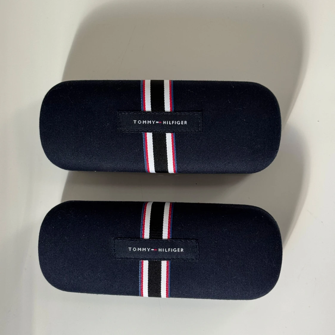 Tommy Hilfiger glasögonfodral två styckna med väldigt hög kvalité, dom är knappt använda och är i färg marinblå Hittade ingen original förpackning eller kvitto Du kan alltid köpa med ett par glasögon med fodralen så får du med allt på samma gång!