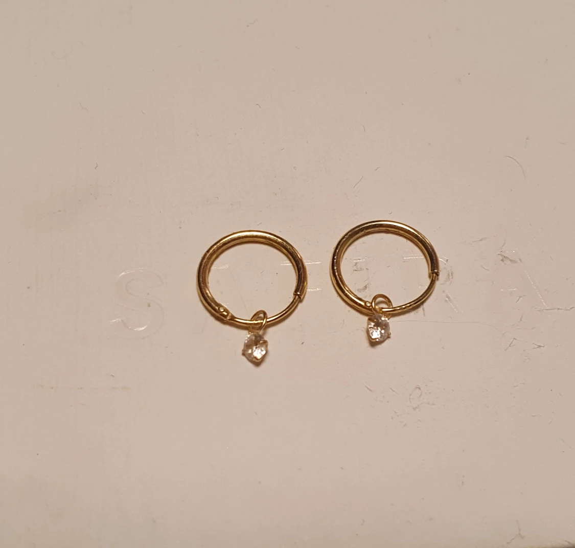 Oanväda/nyskick guldpläterade örhängen med äkta 925silver under plätering. Så söta med små kristaller. Pris 160r