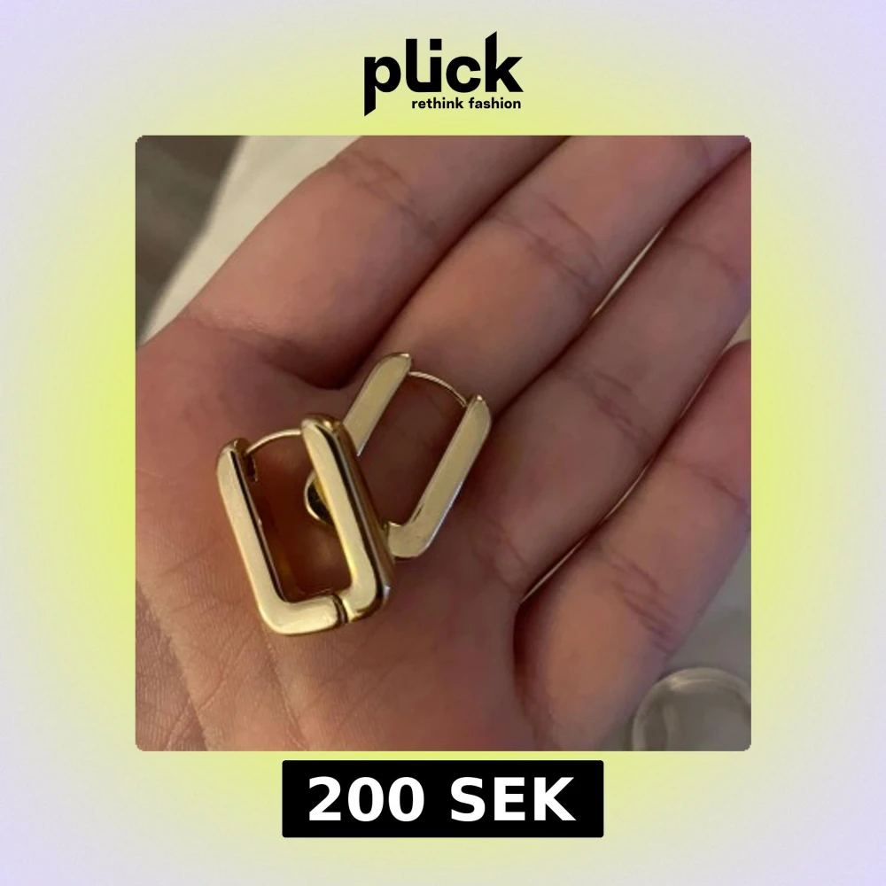 Säljer ett par coola chunky örhängen i guld med fyrkantig, modern design. De är stilrena och har en slät yta som ger en lyxig känsla. Perfekta för dig som gillar statement-smycken och vill sticka ut lite extra.