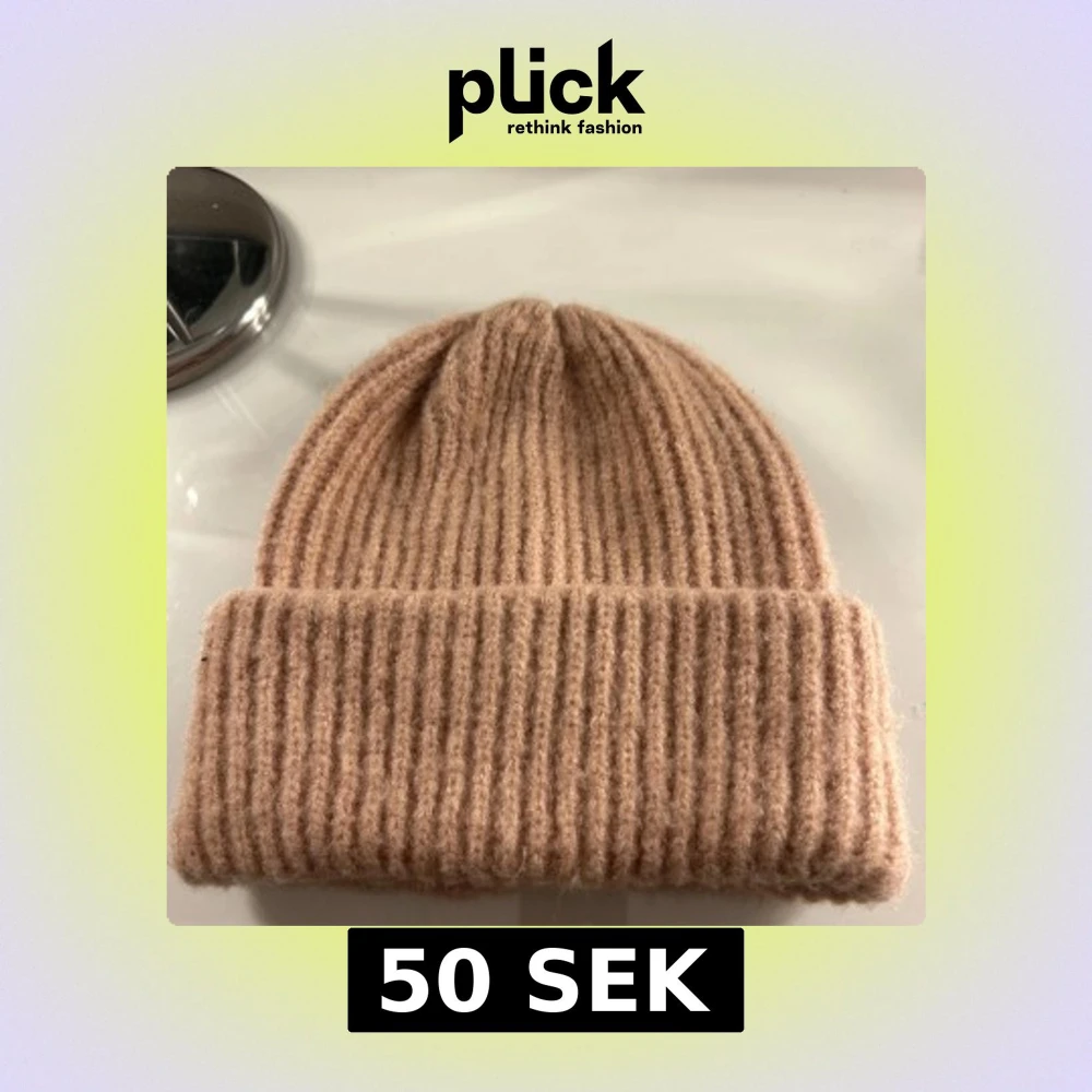 Säljer en mysig beige ribbad mössa från Glitter. Perfekt för kyliga dagar med sin mjuka och varma design. Mössan har en klassisk uppvikt kant som ger en stilren look. Sällan använd, max 3 gånger!💞