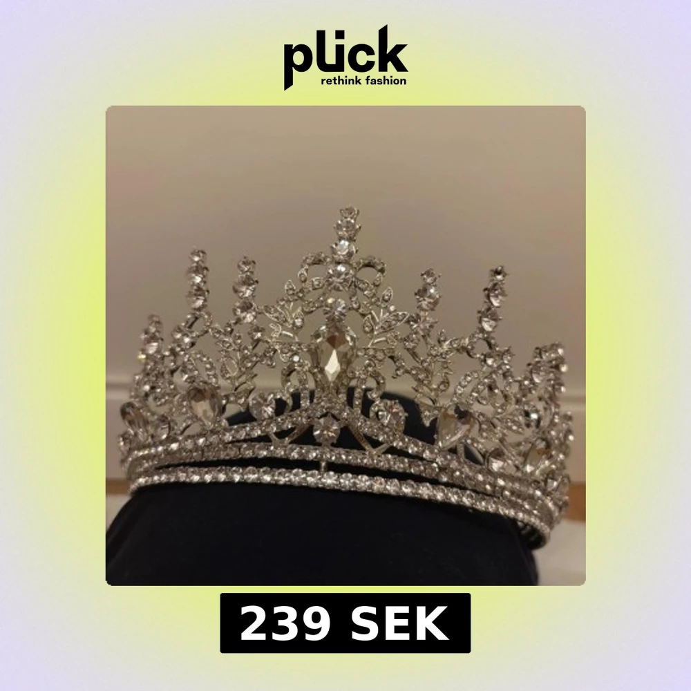 En riktigt maffig tiara i silverfärg med massor av gnistrande stenar och detaljerade blommönster. Tiaran har en klassisk, kunglig form med höga spetsar och stora kristalliknande stenar som fångar ljuset. Perfekt nu inför Halloween.