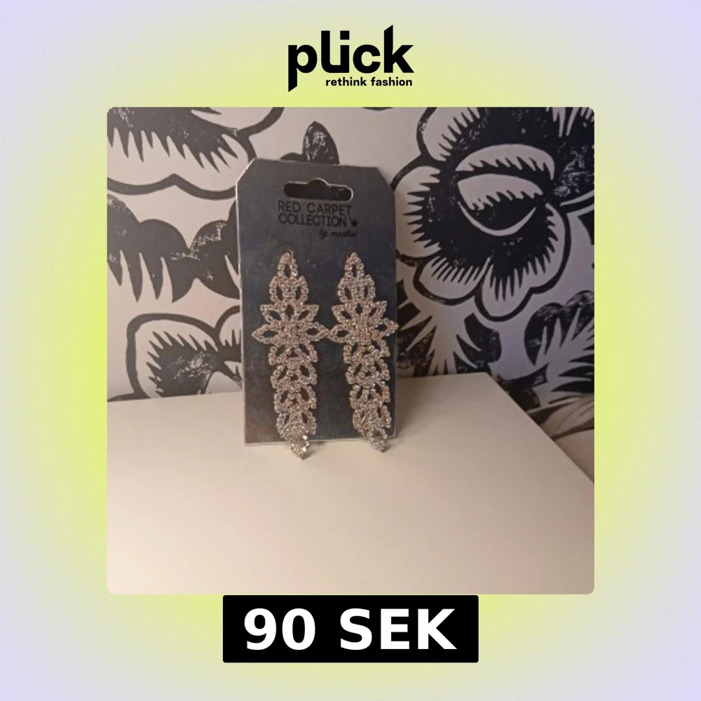 Säljer ett par långa, glittriga örhängen i silverfärg från Red Carpet Collection by madlady. Örhängena har ett detaljerat, bladliknande mönster och är perfekta för att ge en extra touch till din outfit. För stora för min smak men perfekt på en ute kväll men kompisar eller ens kille helt nya