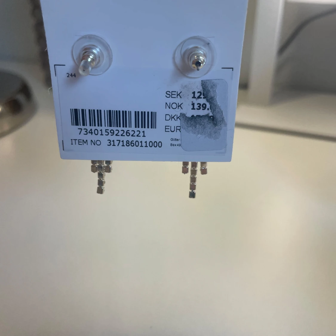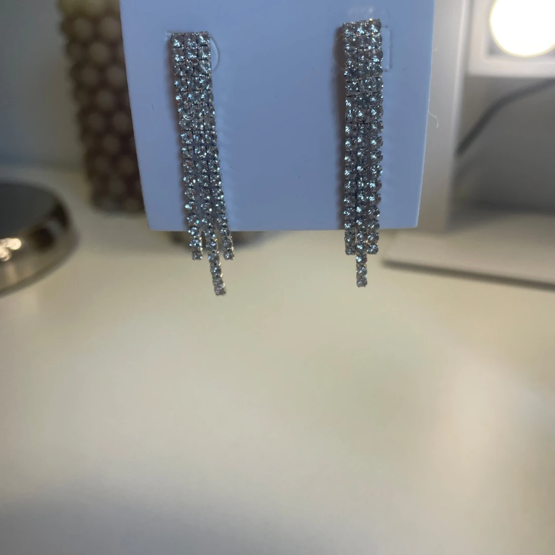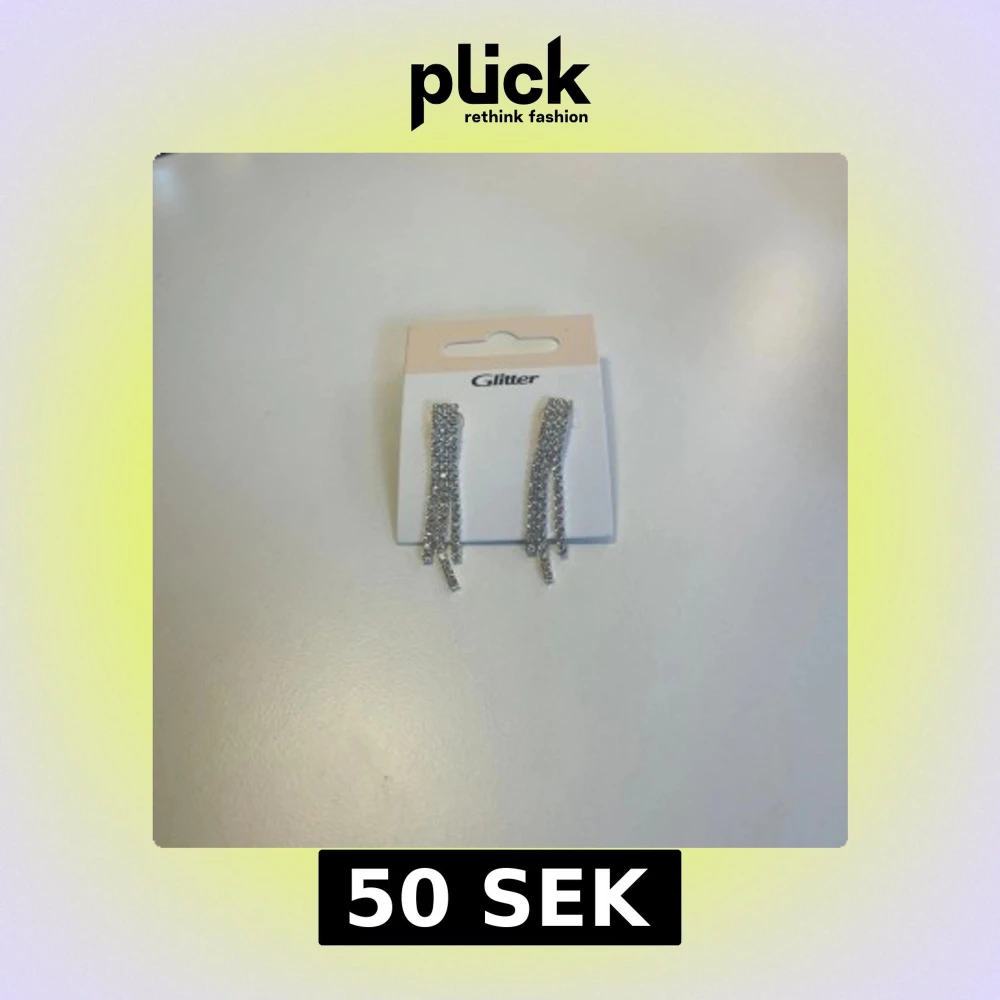 Säljer ett par glittriga silverfärgade örhängen från Glitter. Örhängena har flera hängande rader med gnistrande stenar. Perfekta för lite finare stunder eller till vardags, nypris 129💗