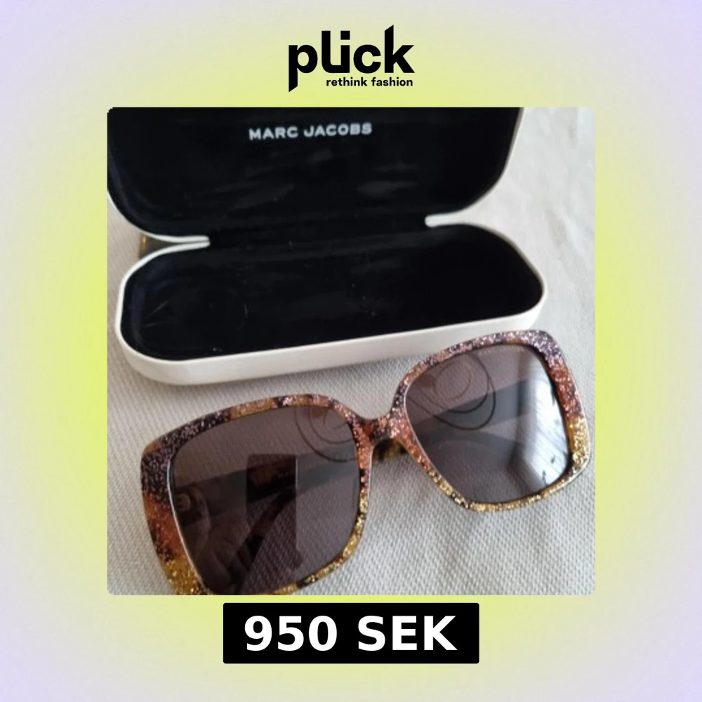 Solglasögon från Marc Jacobs med en fyrkantig form och glittrig båge i nyanser av brunt och guld. Glas I toned gråbrun färg. Kommer med ett fodral och två putsdukar. Äkta och aldrig använda. Nypris 3500