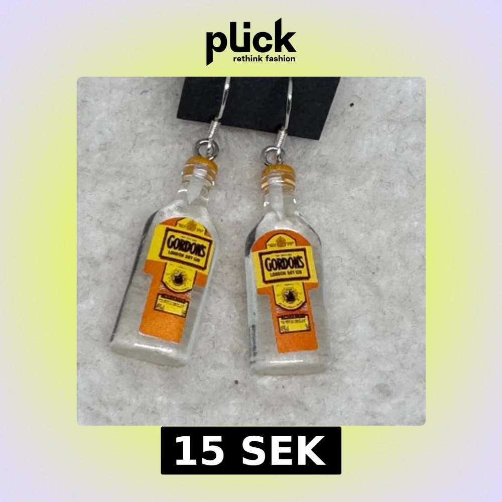 Roliga örhängen formade som små Gordons ginflaskor med detaljer i gult, orange och svart. Perfekt accessoar för dig som gillar unika och lekfulla smycken. Hängande modell med sterling silver krokar