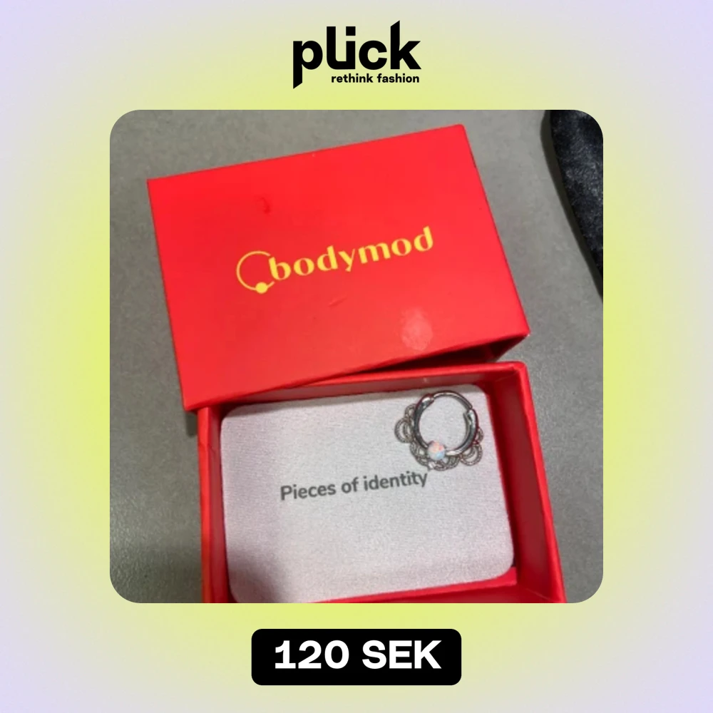 Oanvänd, ej testad. Avspritad! Köpt på bodymod.se. Säljer denna vackra piercing med opal då jag råkade köpa fel storlek. 🩵 Septum clicker med gångjärn. Material: Kirurgiskt stål. Tjocklek: 1.2 mm Längd: 9 mm Ringdiameter: 10 mm