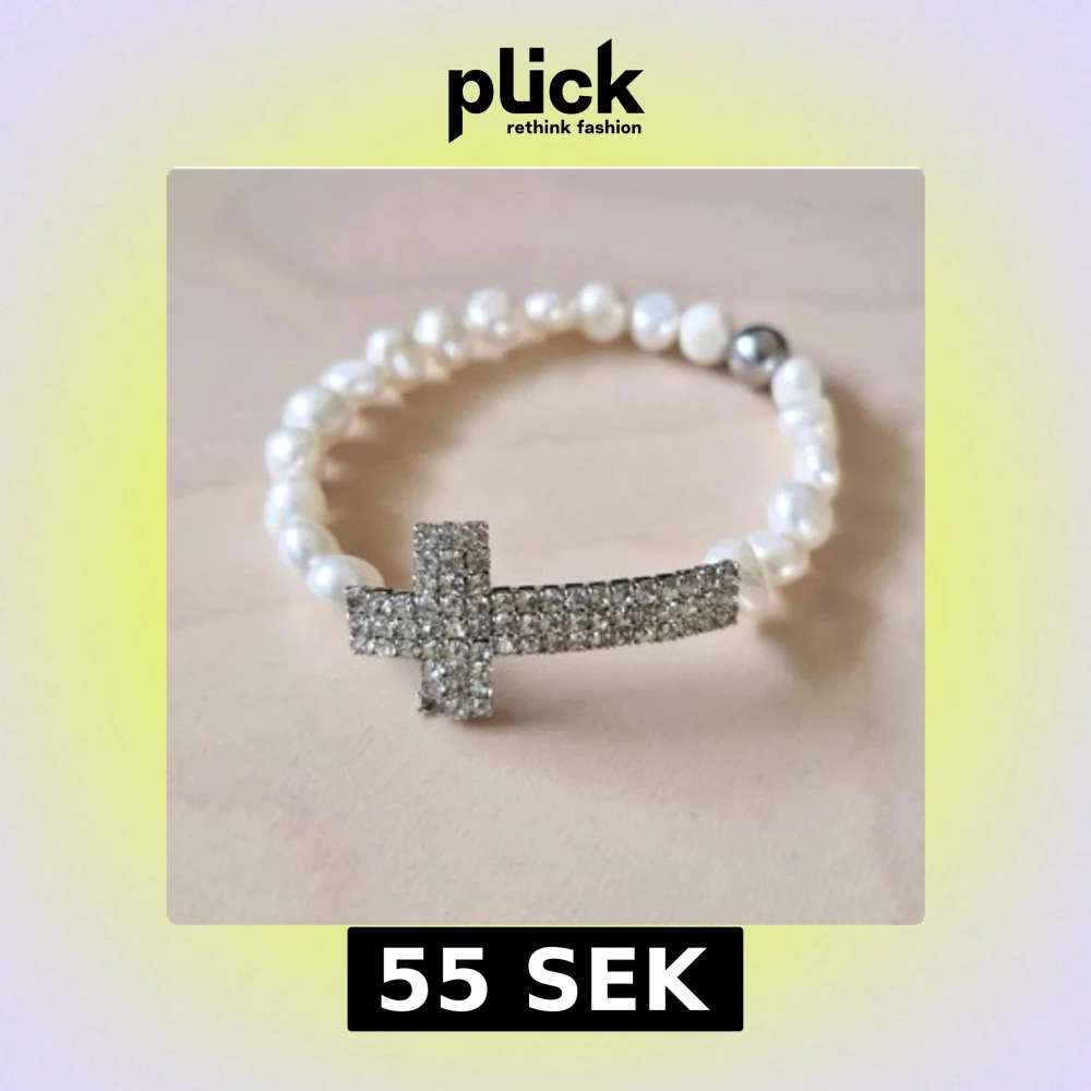 Vackert armband med äkta sötvattenspärlor! 🌸 Saknas en sten på korset, i övrigt i fint skick :) Elastisk tråd. Hör gärna av er vid frågor och glöm inte att kolla in garderoben för fler liknande plagg o smycken!