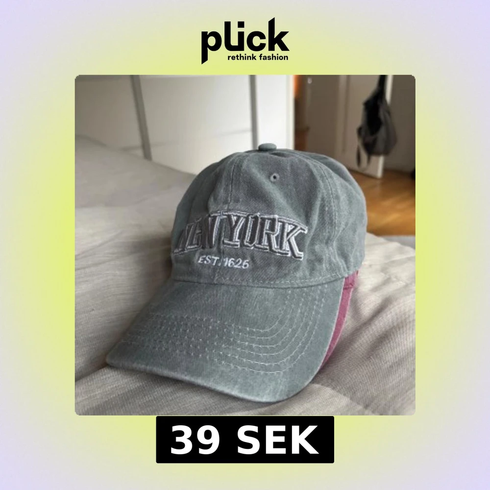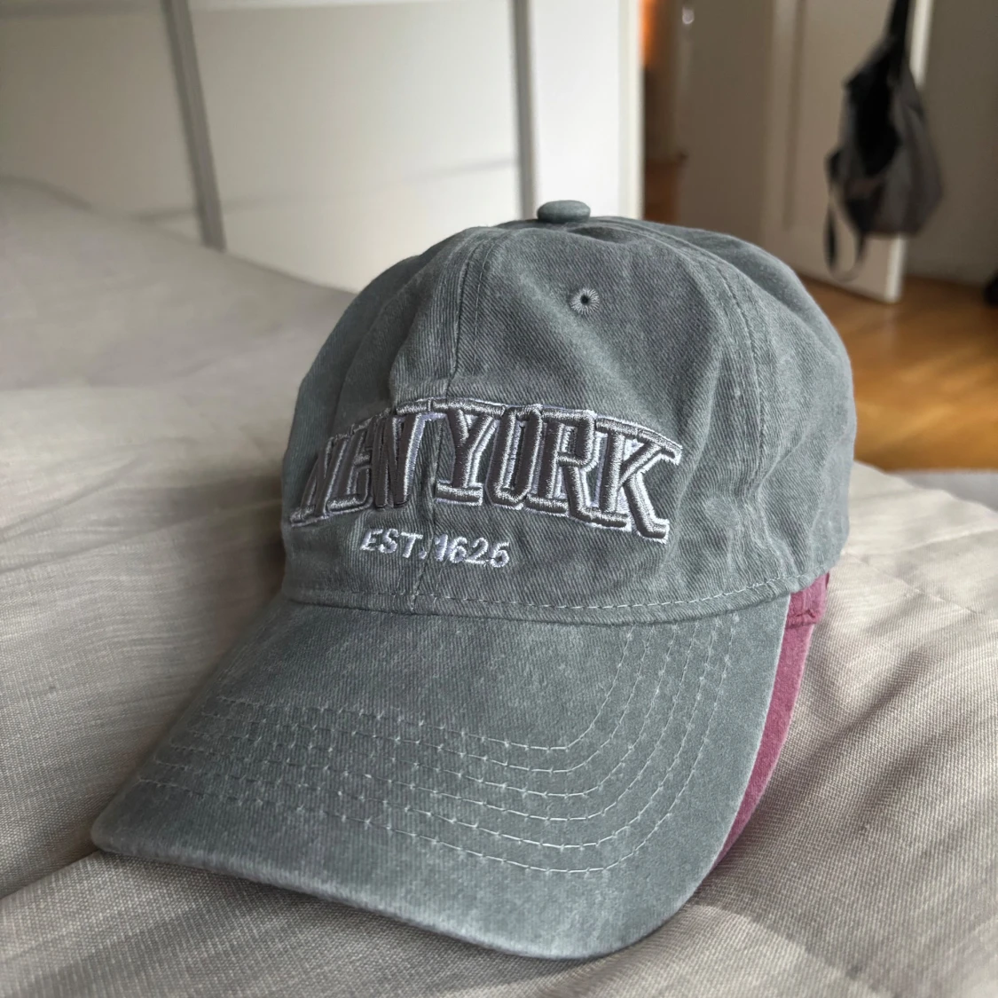 Snygg grå keps med vit brodyr där det står 'NEW YORK EST. 1626 framtill. Klassisk böjd skärm och justerbar passform bak. Perfekt accessoar för en chill streetstyle-look. Vet tyvärr inte varumärke
