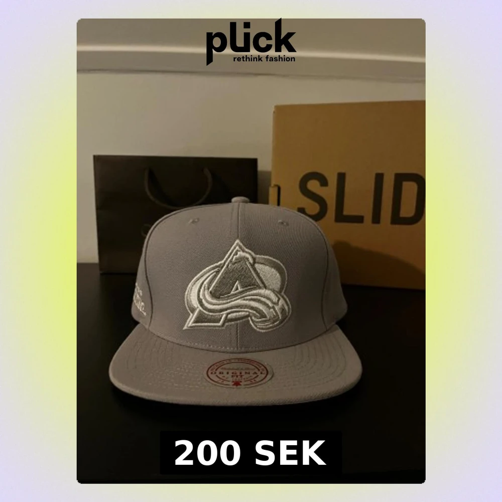 Snygg grå keps från Mitchell & Ness med Colorado Avalanche-logga broderad framtill i vitt och silver. Klassisk flatbrim och justerbar passform. Perfekt för dig som gillar sportiga vibes och vill ha en clean look.