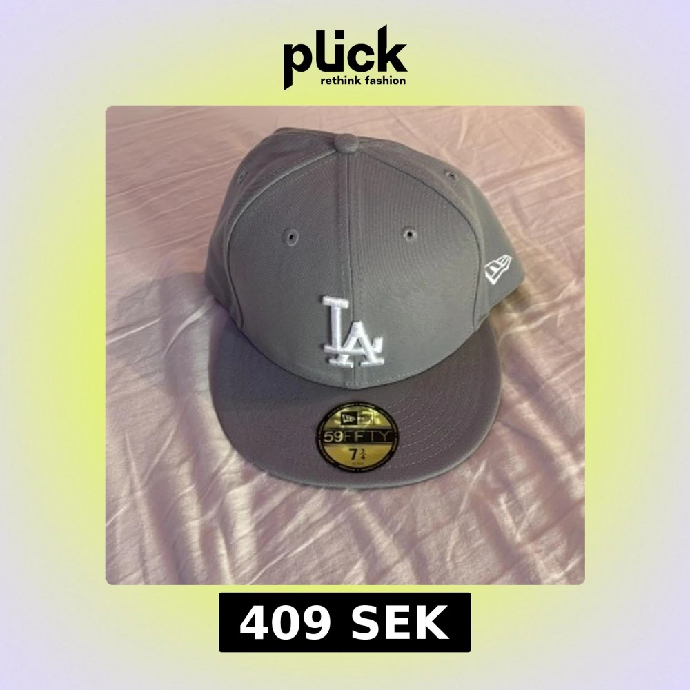 Säljer en grå New Era 59FIFTY keps med LA-logga broderad framtill i vitt. Klassisk flat peak och broderad New Era-logga på sidan. Har aldrig använts då jag råkade beställa en för stor. kommer med hatstore stickers och låda. Nypris:499 mitt pris :409
