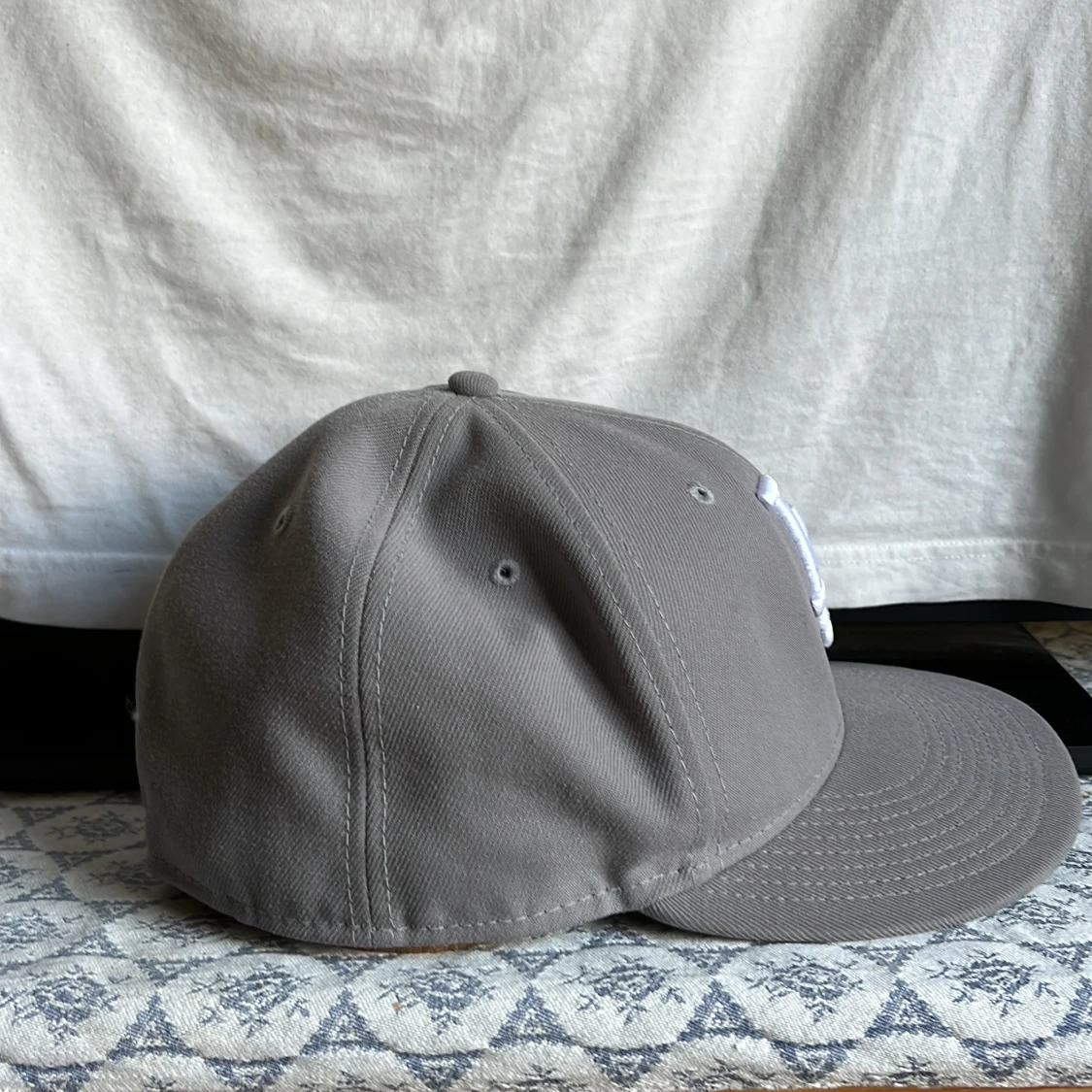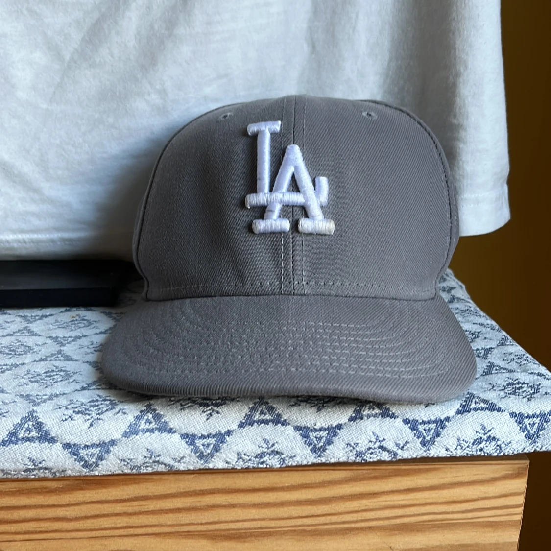 Snygg grå keps från New Era med klassisk LA-logga broderad i vitt framtill. Kepsen har böjd skärm, broderade ventilationshål och MLB-logga baktill. Tillverkad i bomull för en bekväm passform och stilren look. Kepsen passar den som har lite större huvud!