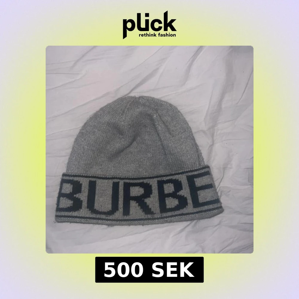Snygg grå stickad mössa från Burberry med bred kant där loggan är invävd i svart. Mjuk och varm, perfekt för kyliga dagar. Stilren design som passar till de flesta jackor och outfits.