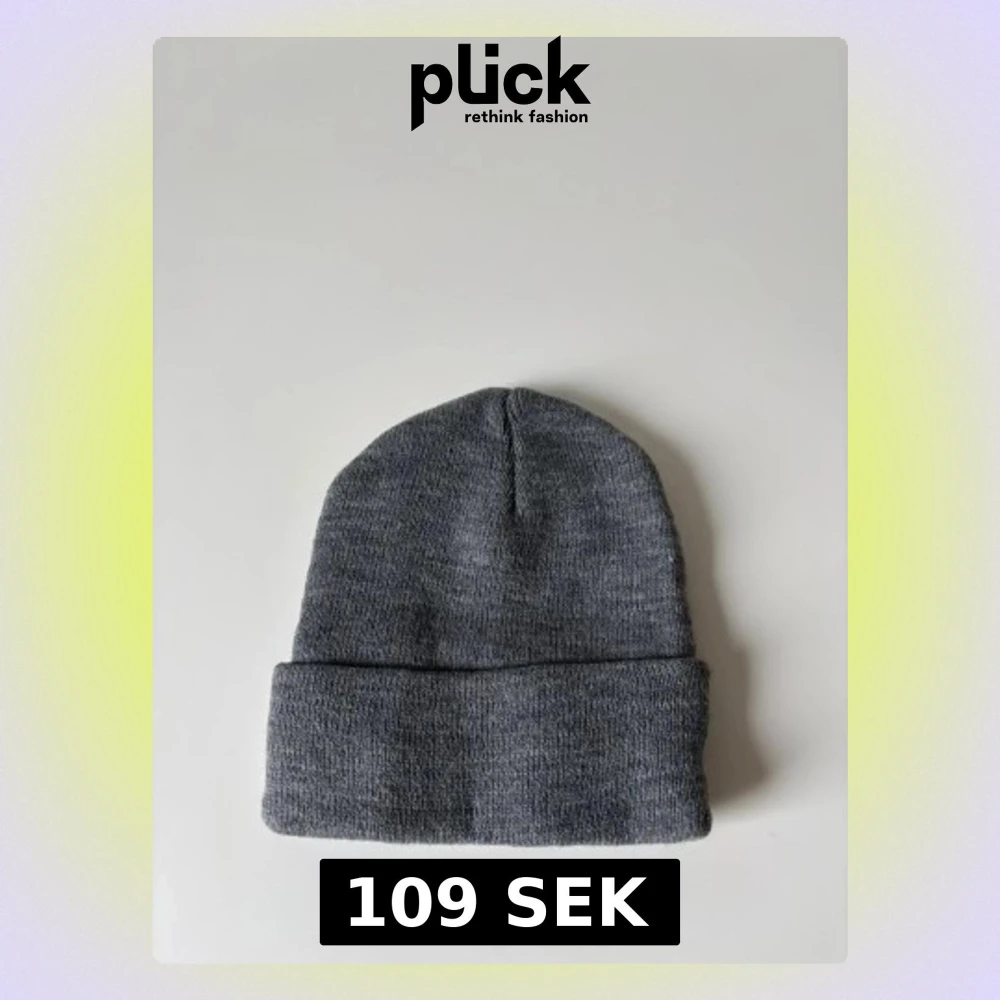 En enkel och stilren grå stickad mössa med uppvikt kant. Perfekt för kalla dagar och passar till de flesta outfits. Mjuk och skön, håller dig varm och ser snygg ut samtidigt. Helt ny.