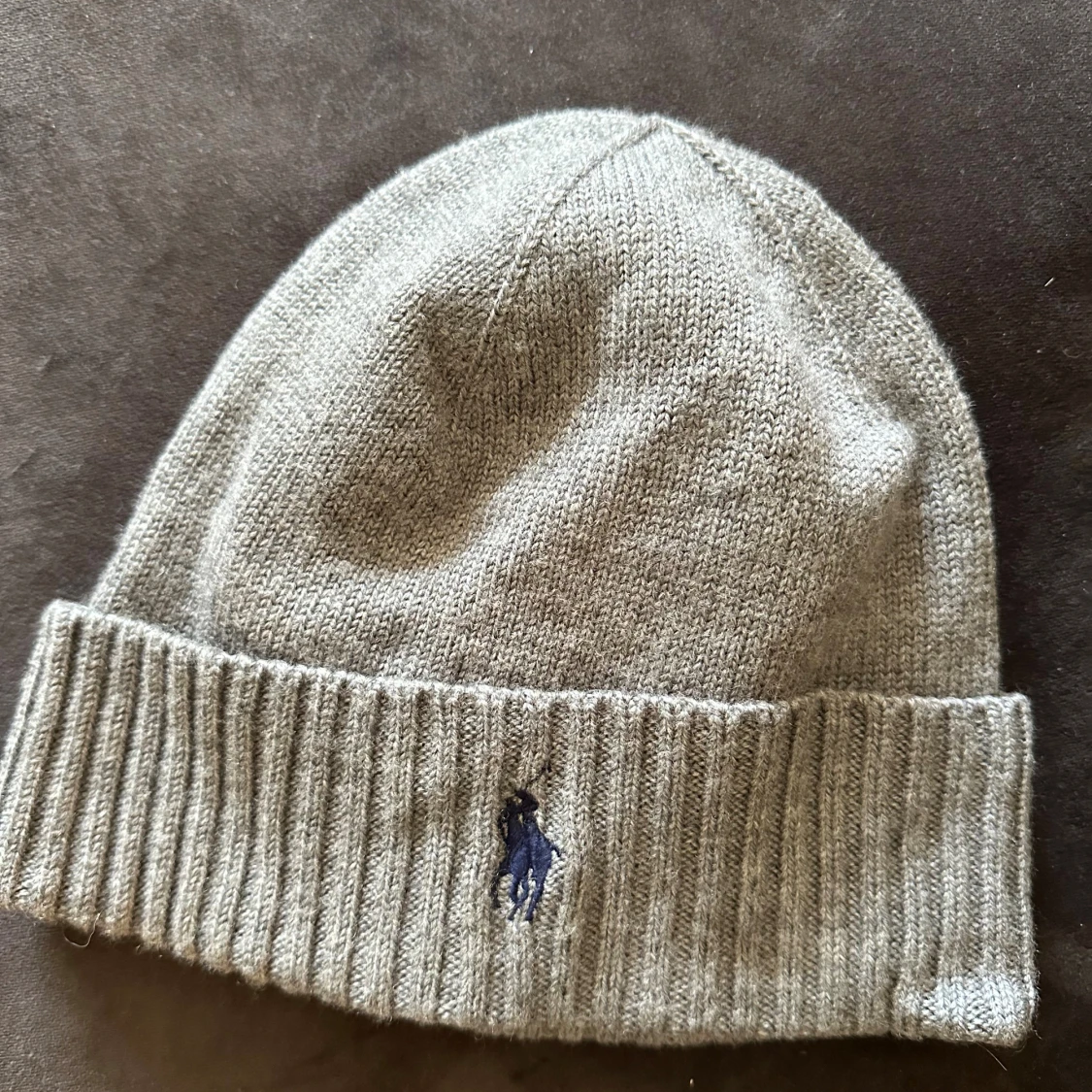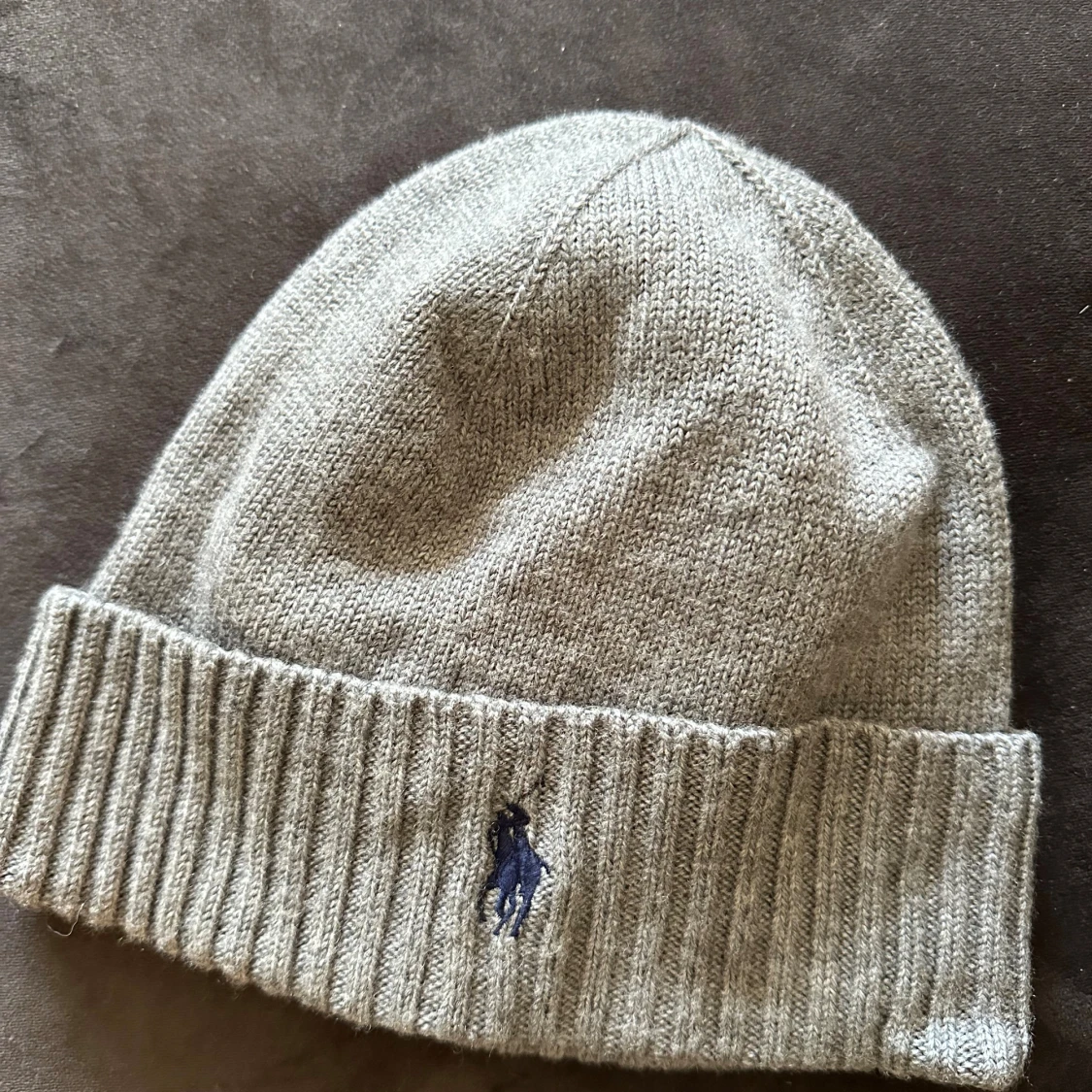 Snygg grå stickad mössa från Polo Ralph Lauren med klassisk ribbad kant och broderad marinblå logga framtill. Perfekt accessoar för kyliga dagar och enkel att matcha med olika outfits.