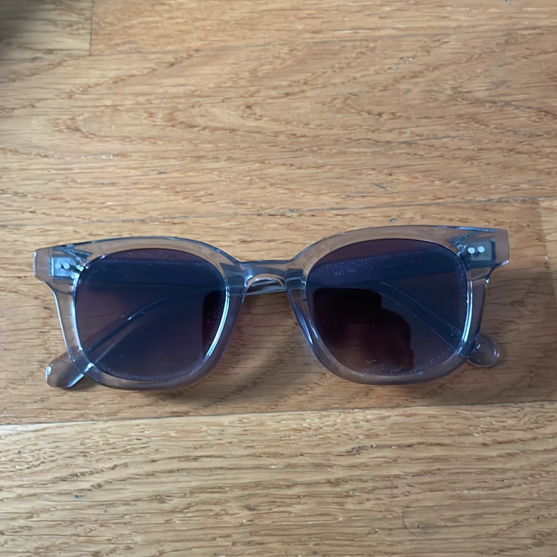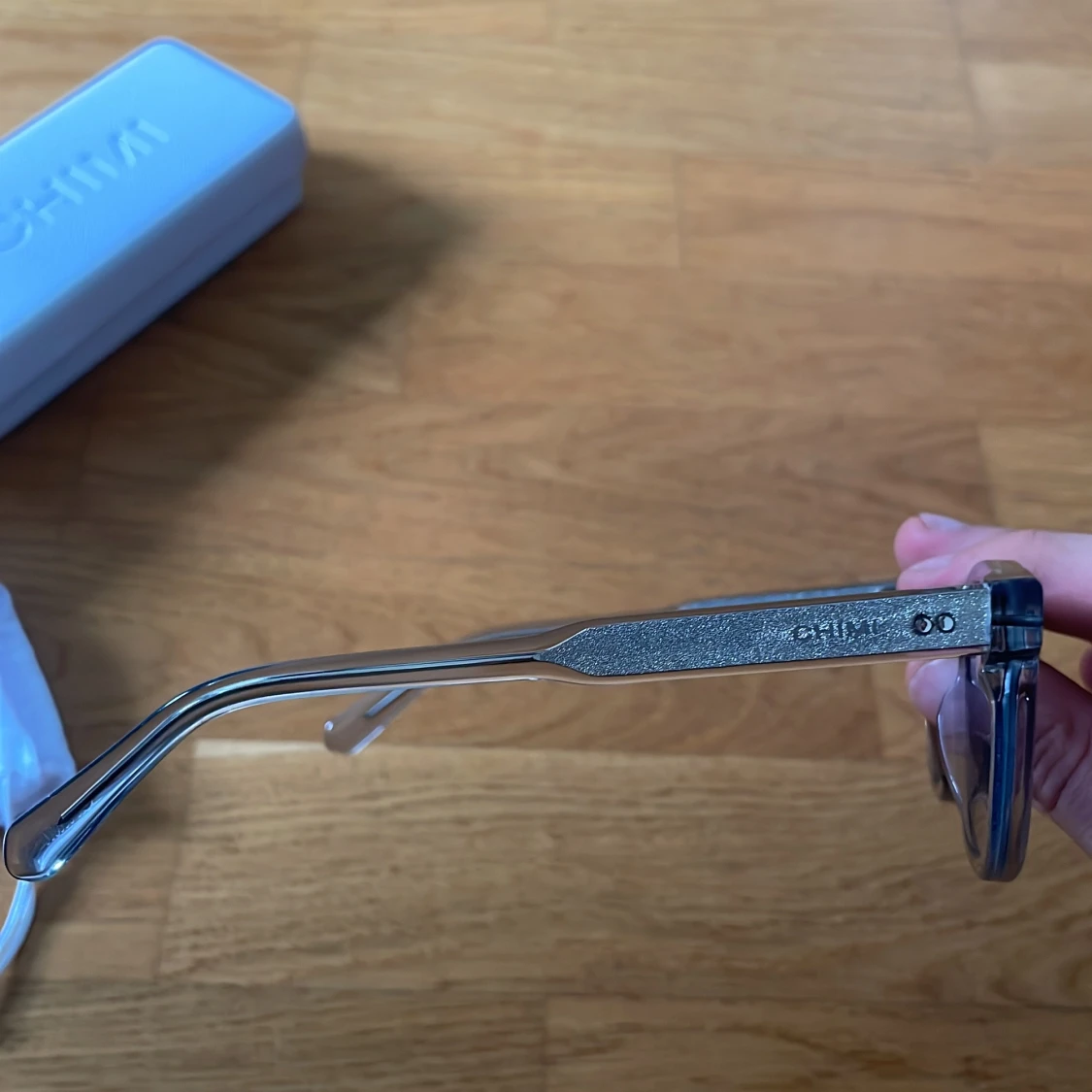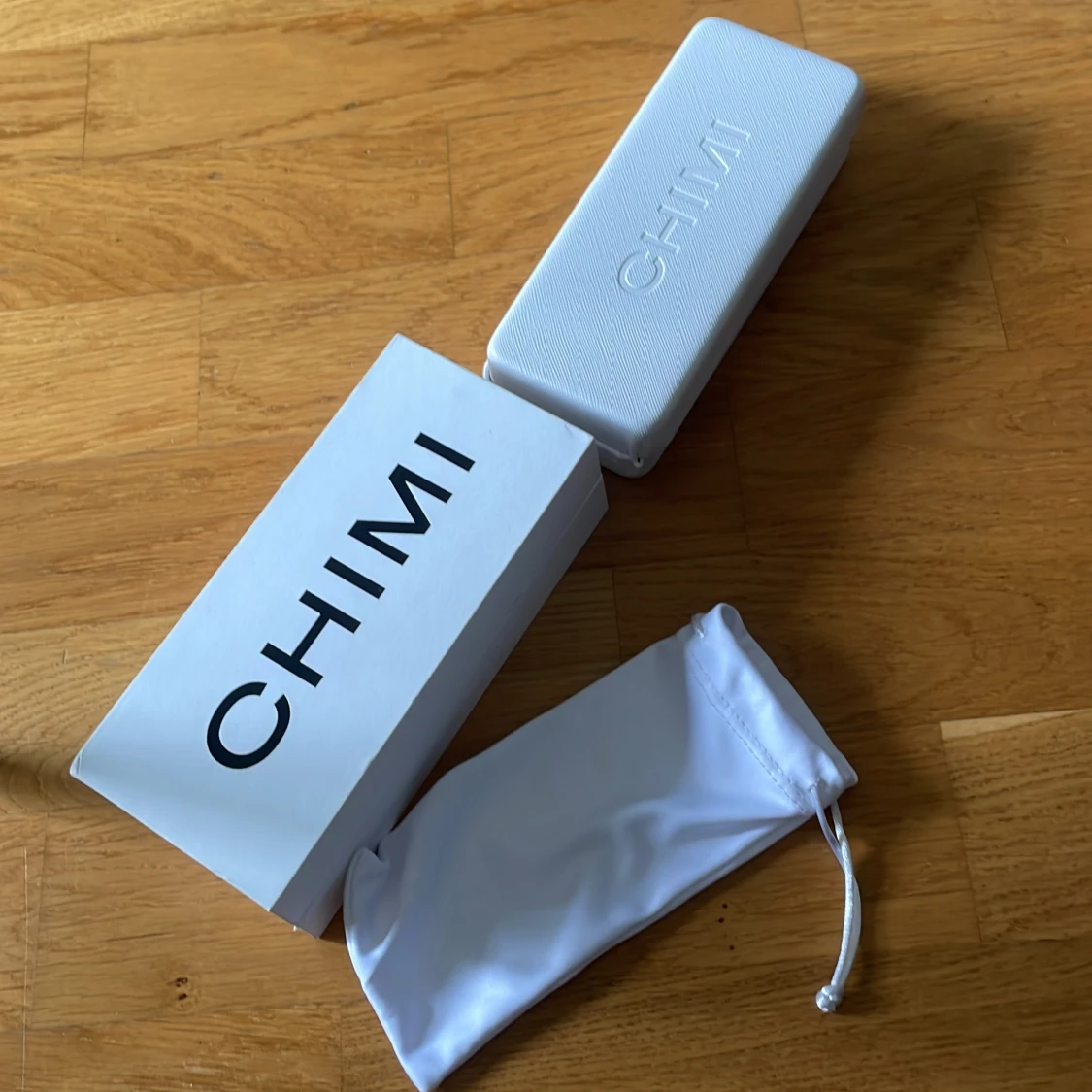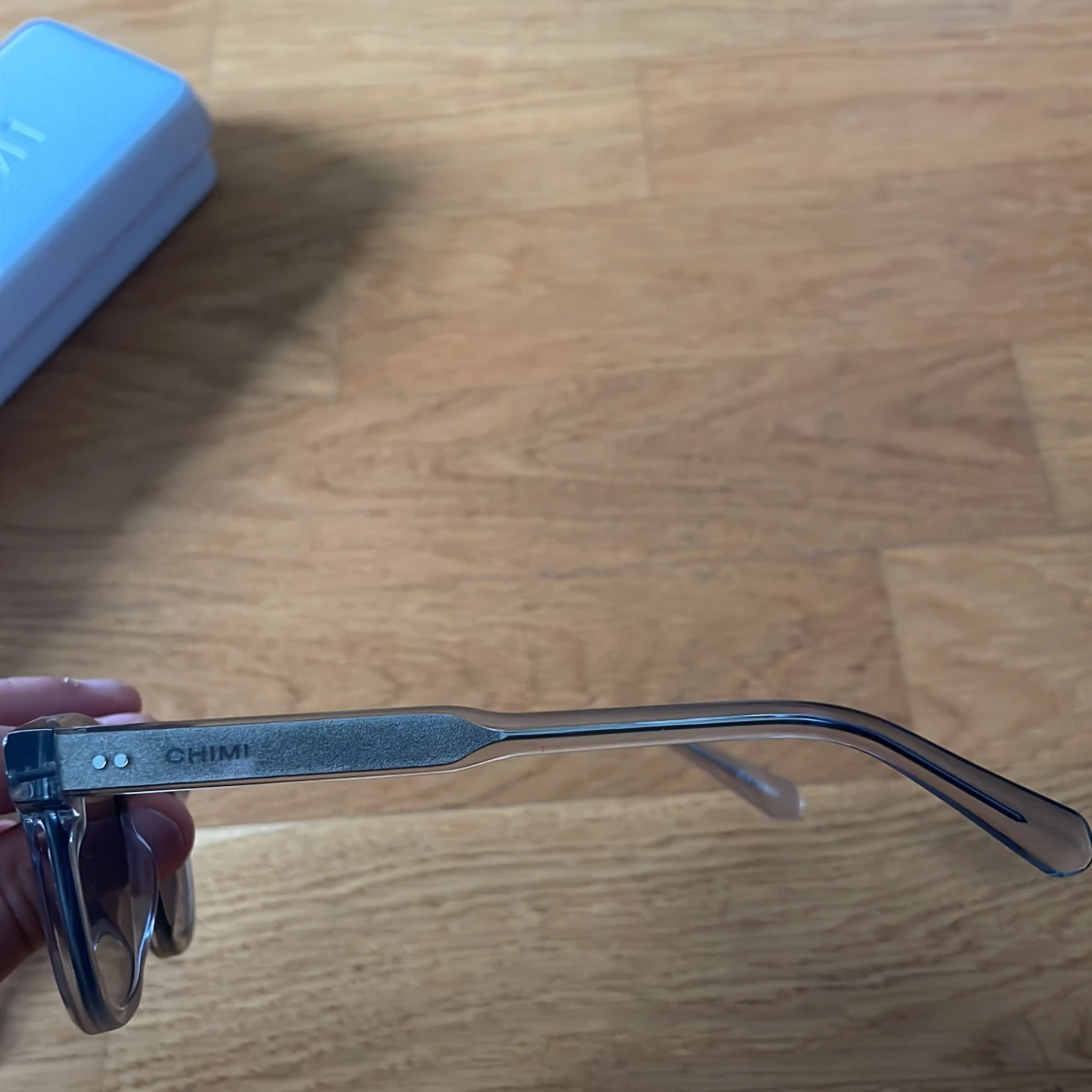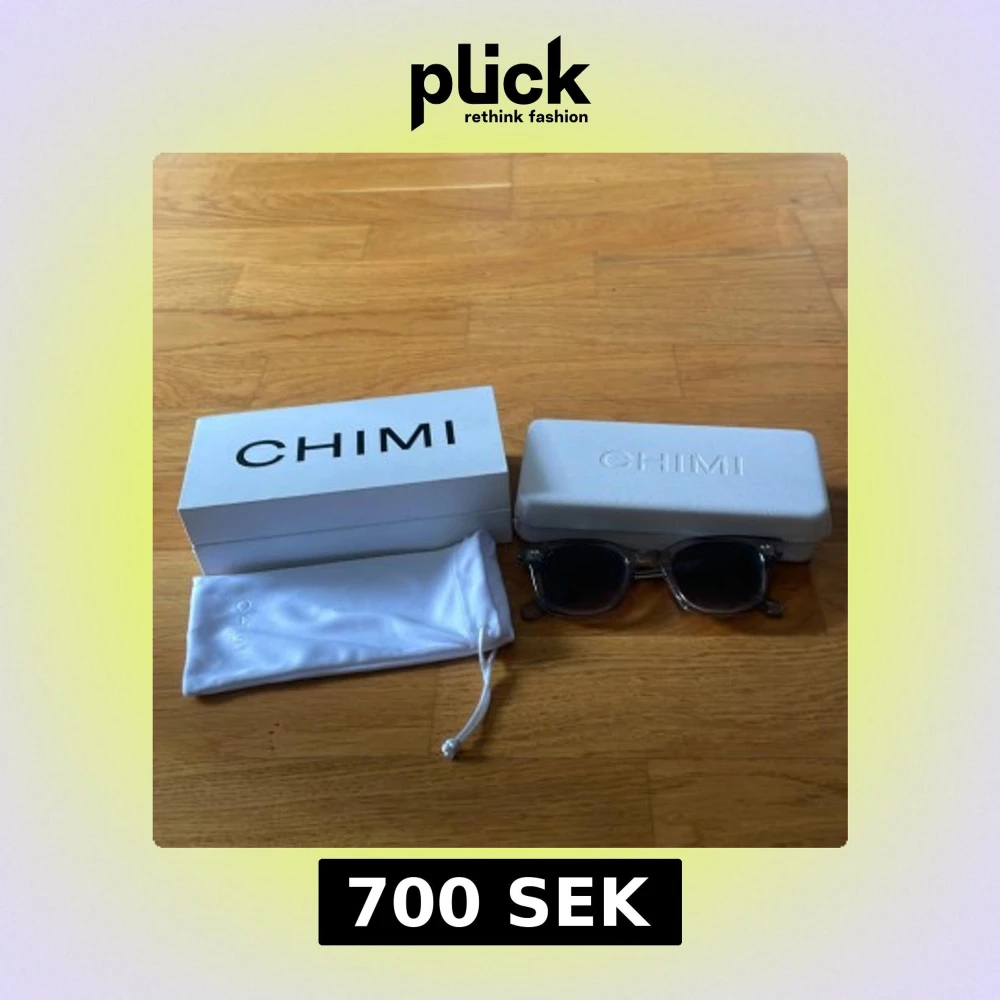 Snygga solglasögon från CHIMI med transparent grå båge och mörka glas. Modellen har en klassisk, något fyrkantig form och coola detaljer i metall på skalmarna. Kommer med originalfodral och tygpåse. Perfekt accessoar för att lyfta din stil.